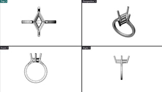 1.75 Carat Black Speckled Kite Diamond Engagement Ring, Ombre Jules Setting, 14K Rose Gold