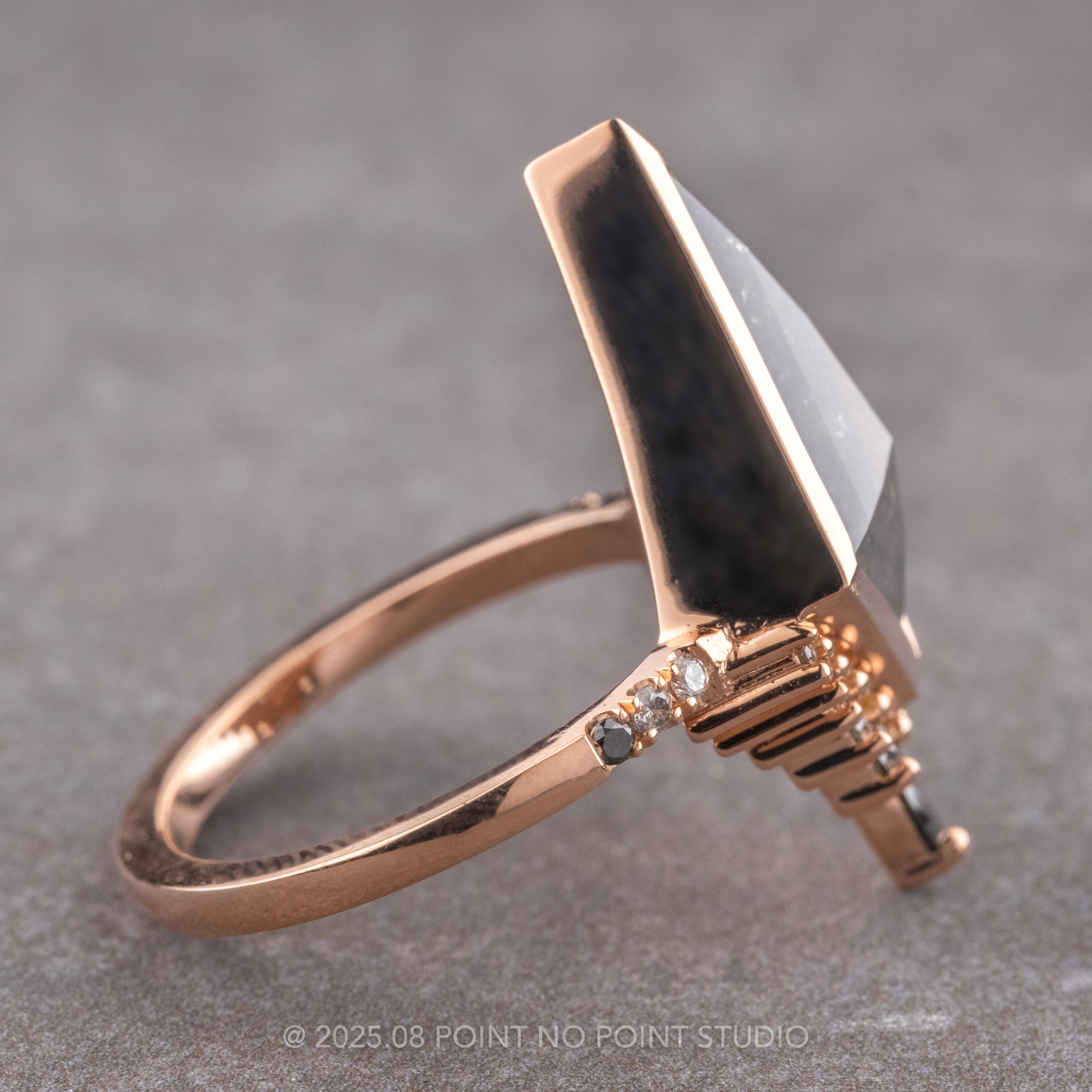 3.30 Carat Black Speckled Kite Diamond Engagement Ring, Bezel Ombre Avaline Setting, 14K Rose Gold