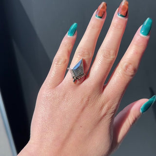 The rose cut diamond has been set in a low-profile bezel setting. The bezel fully encompasses the kite diamond. The entire ring is made of eco-friendly recycled 14k rose gold and sits directly on the finger making this ring extremely comfortable to wear.