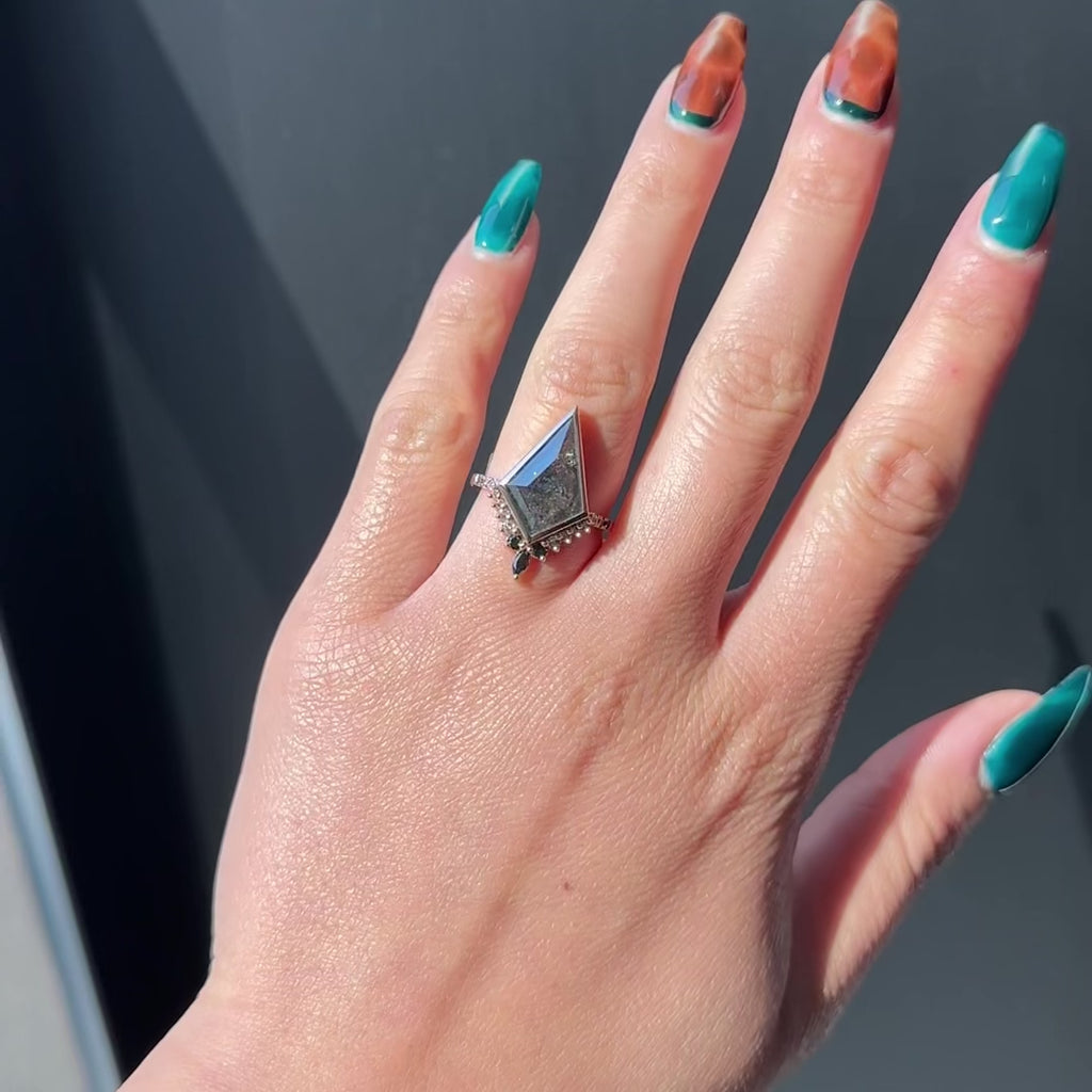 Black Speckled Kite Diamond Engagement Ring