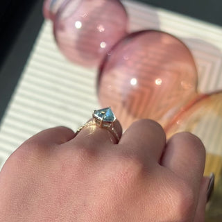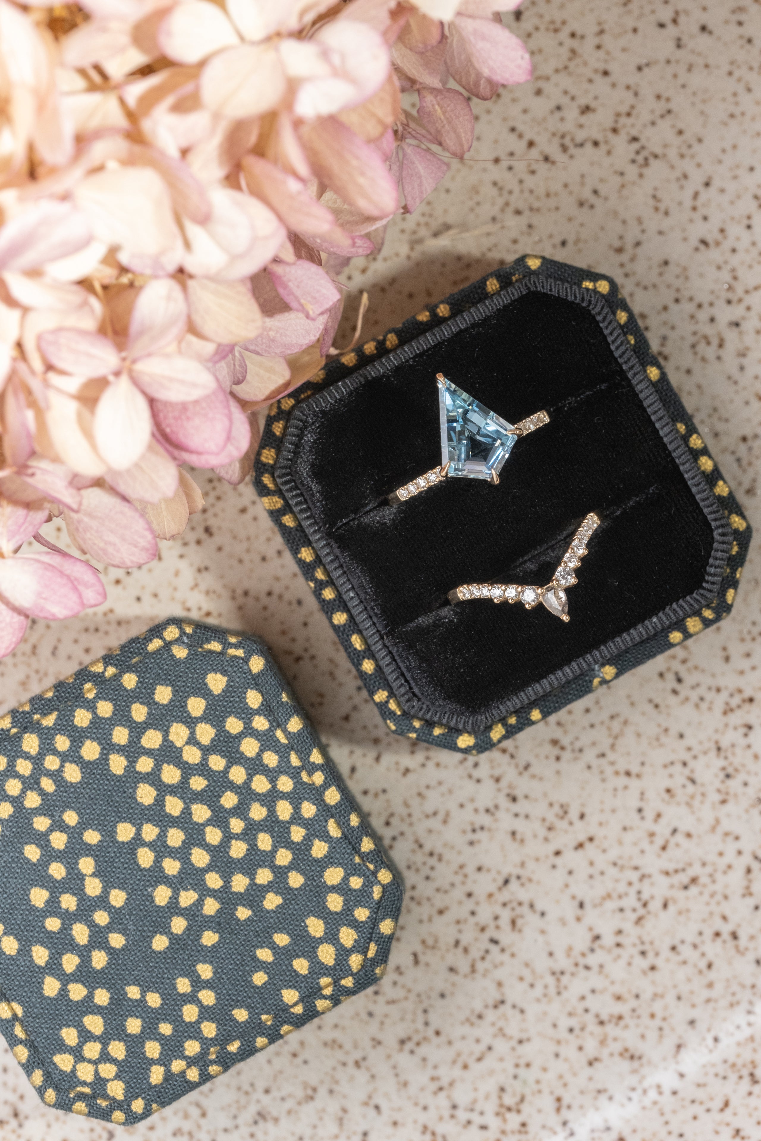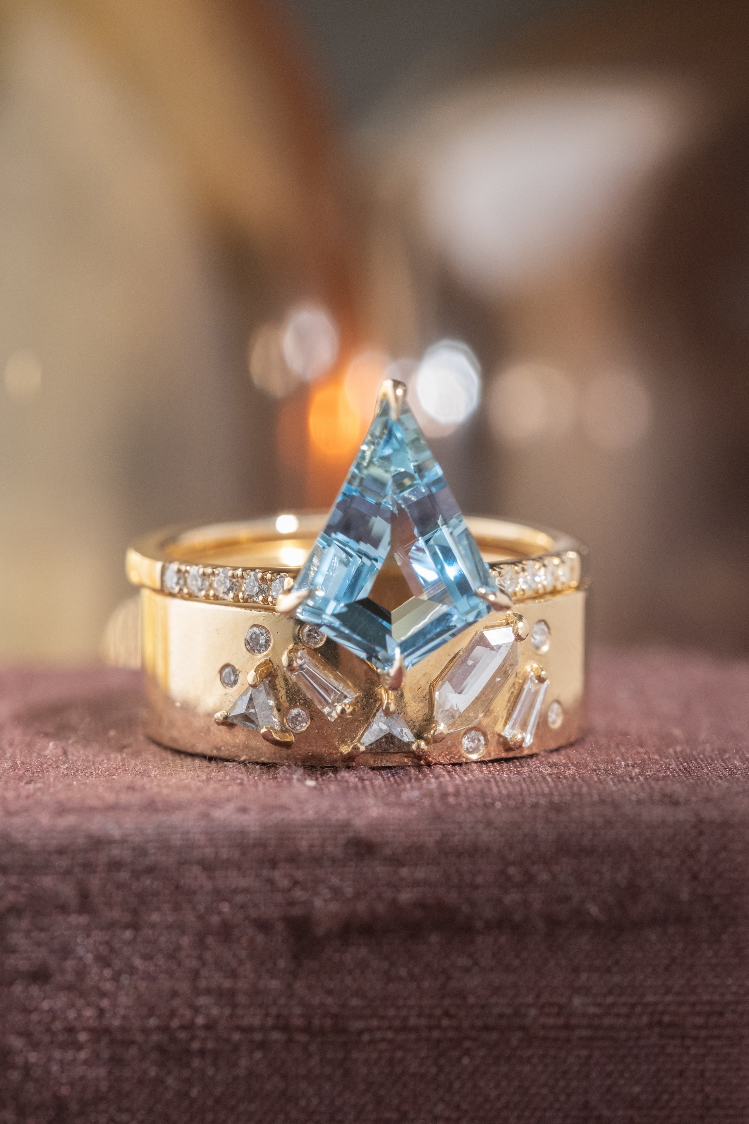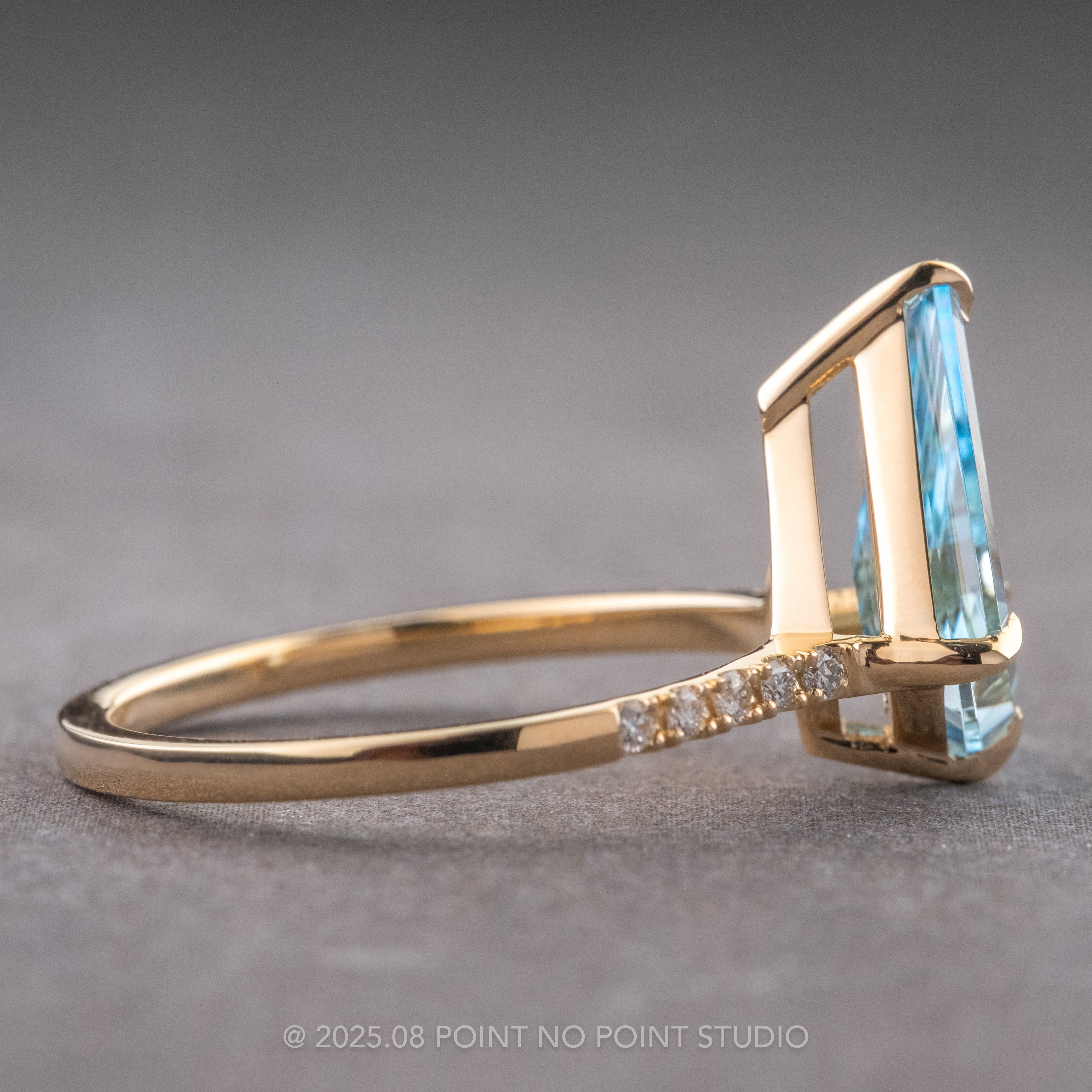 1.83 Carat Kite Aquamarine and Diamond Engagement Ring, Lulu Setting, 14k Yellow Gold