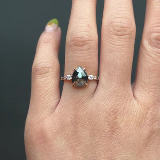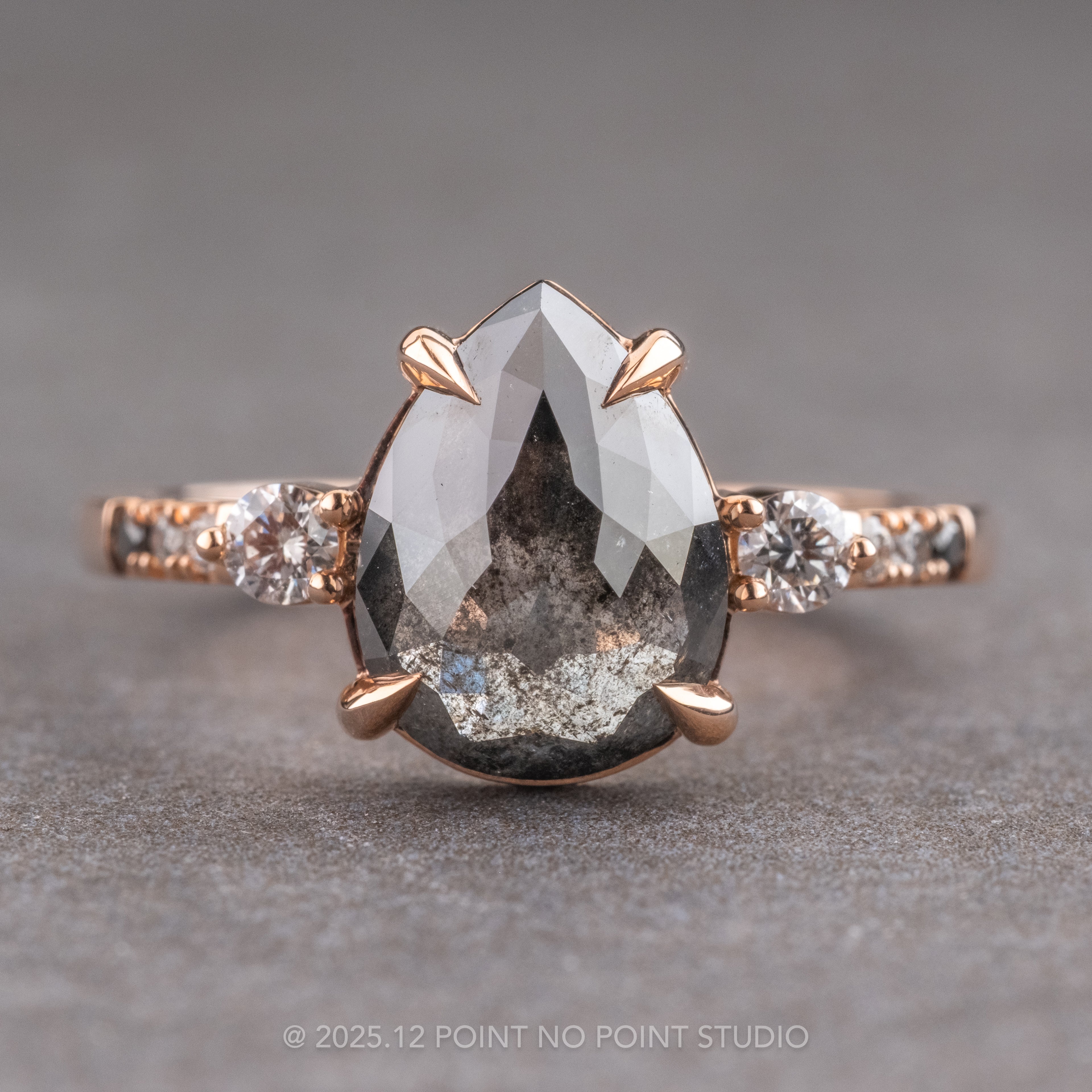 2.62 Carat Black Speckled Pear Diamond Engagement Ring, Ombre Eliza Setting, 14K Rose Gold