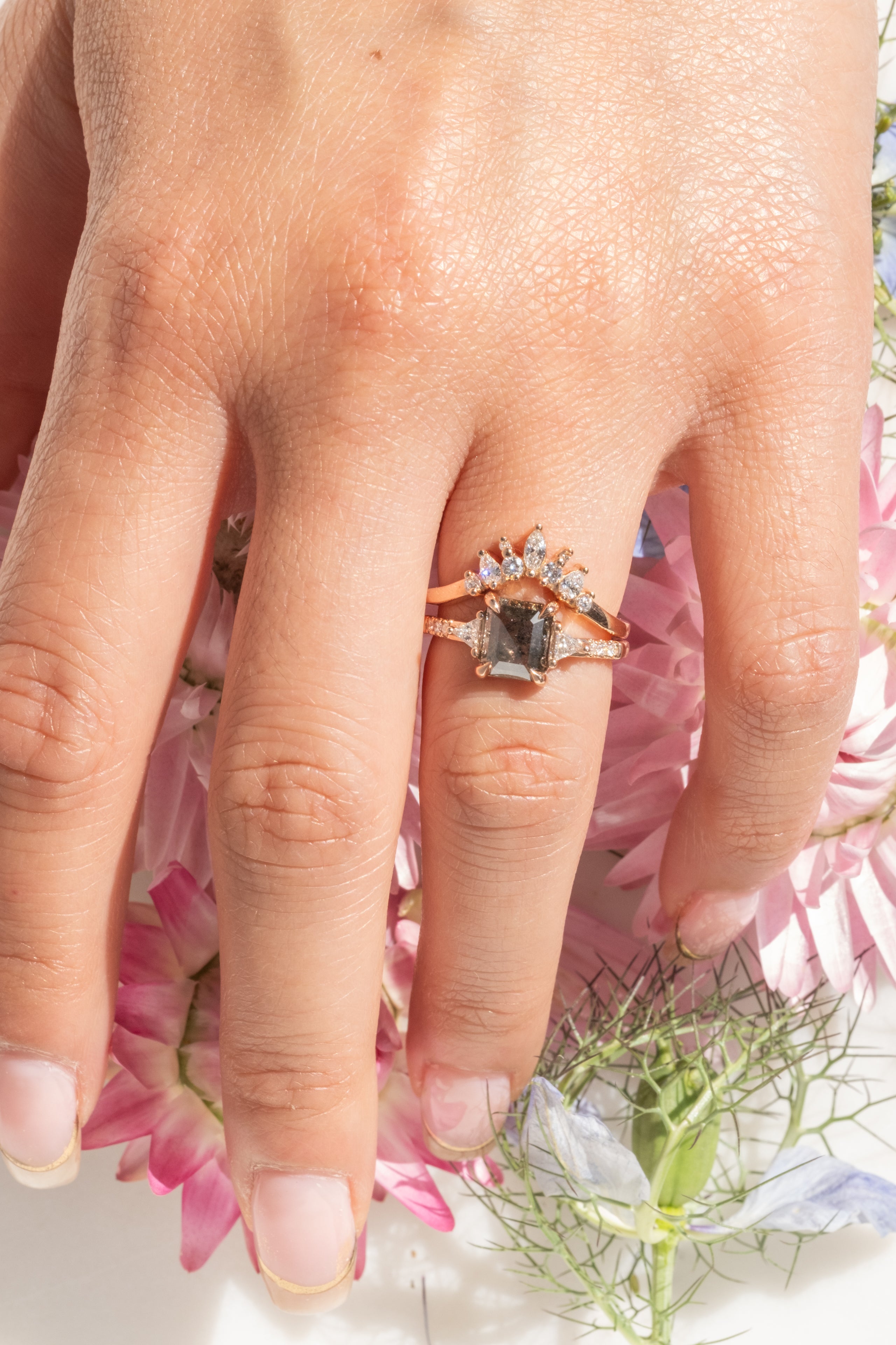 Wedding Rings: This engagement ring can be stacked with ANY of our hundreds of wedding ring options, we use the same engagement ring CAD measurements to build the wedding ring around it to ensure a great stacking set.
