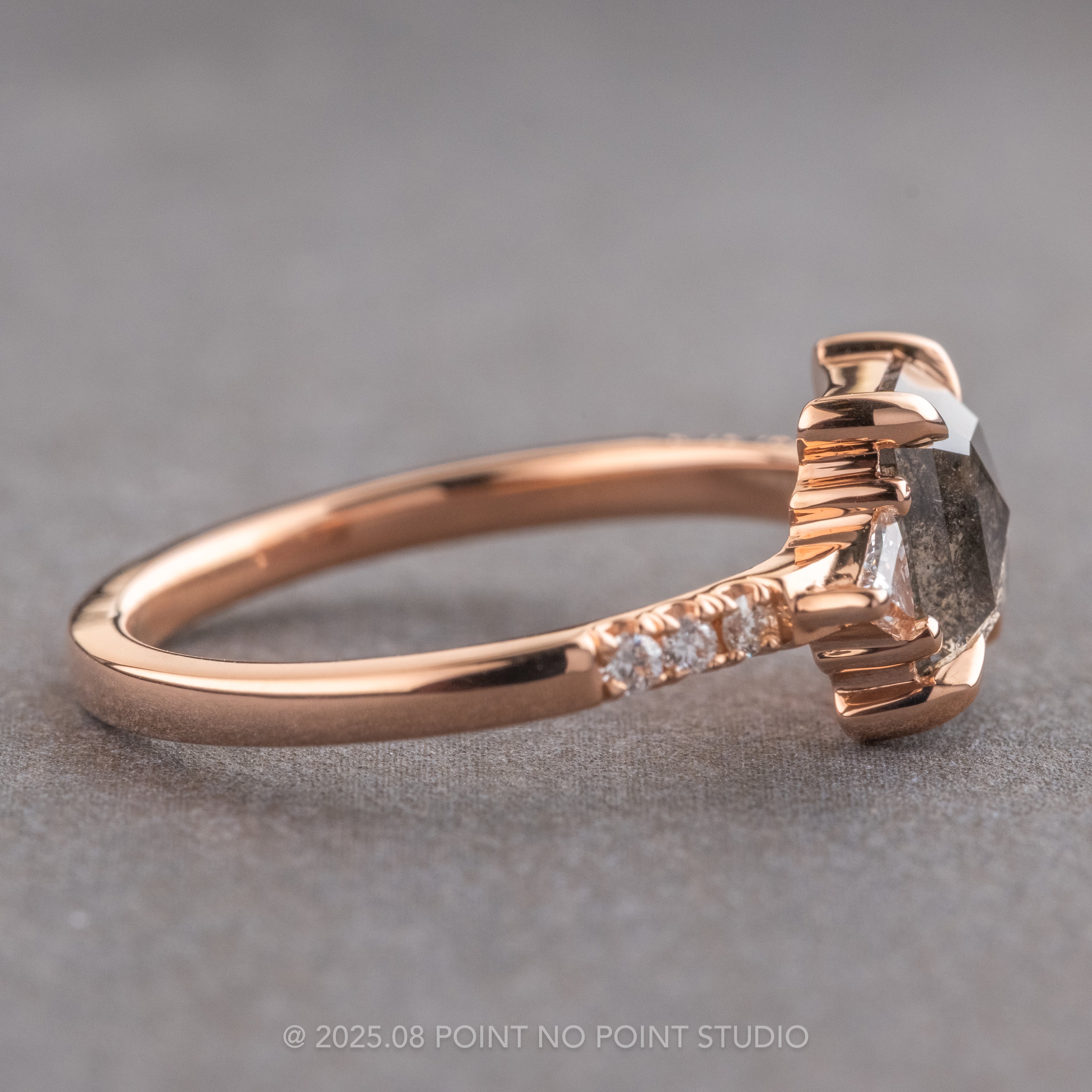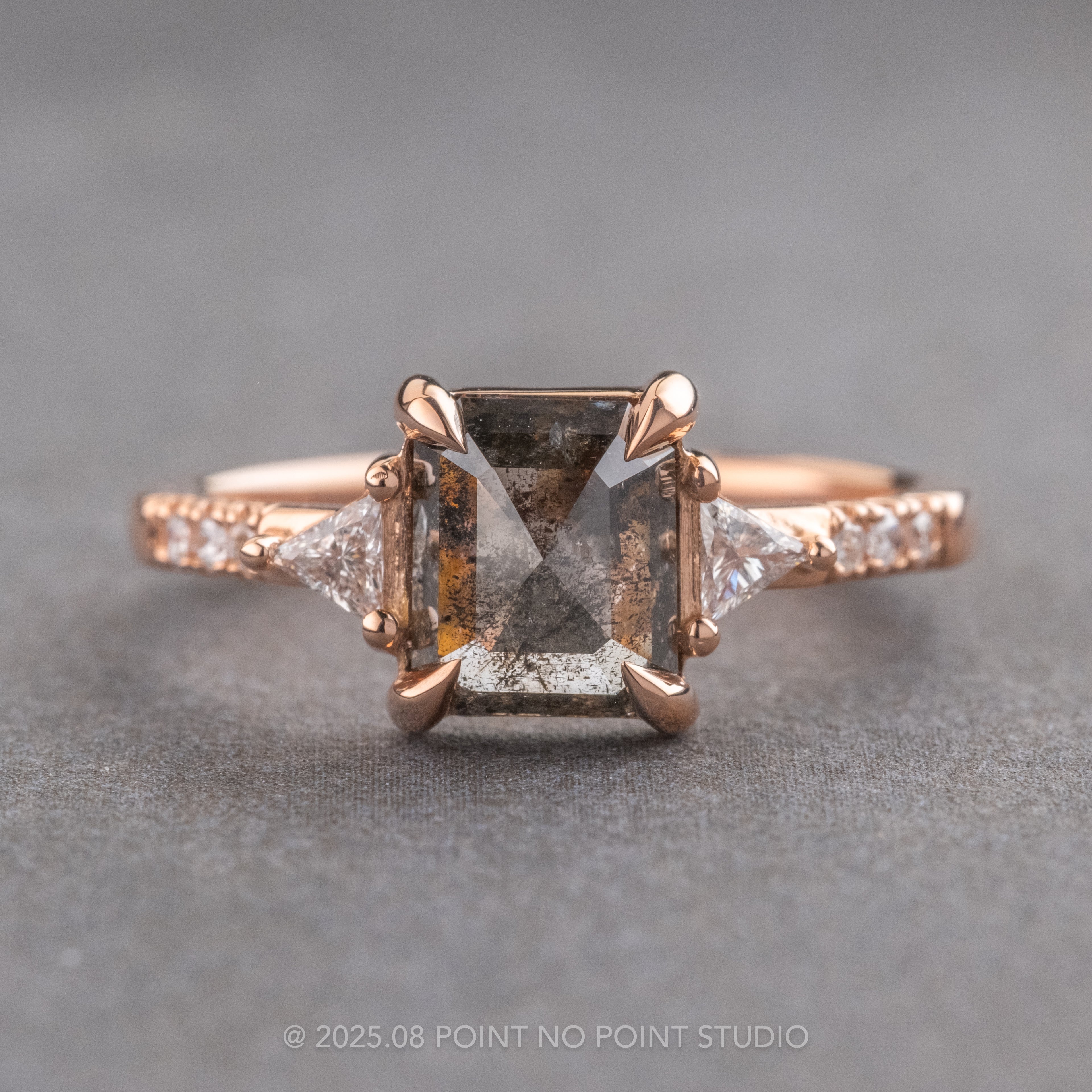1.45 Carat Black Speckled Emerald Shaped Diamond Engagement Ring, Eliza Setting, 14K Rose Gold