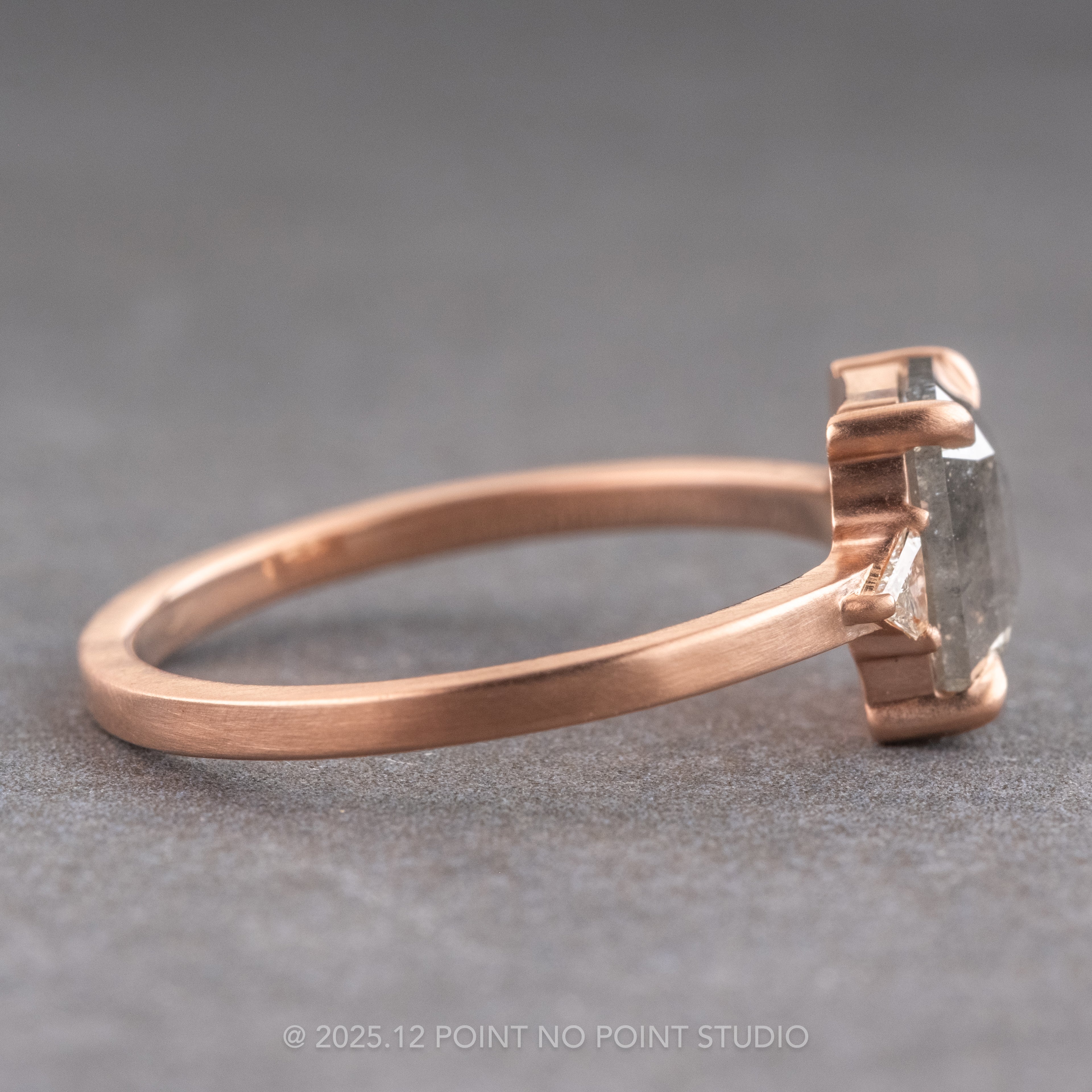 1.53 Carat Icy Grey Emerald Cut Diamond Engagement Ring, Zoe Setting, 14K Rose Gold