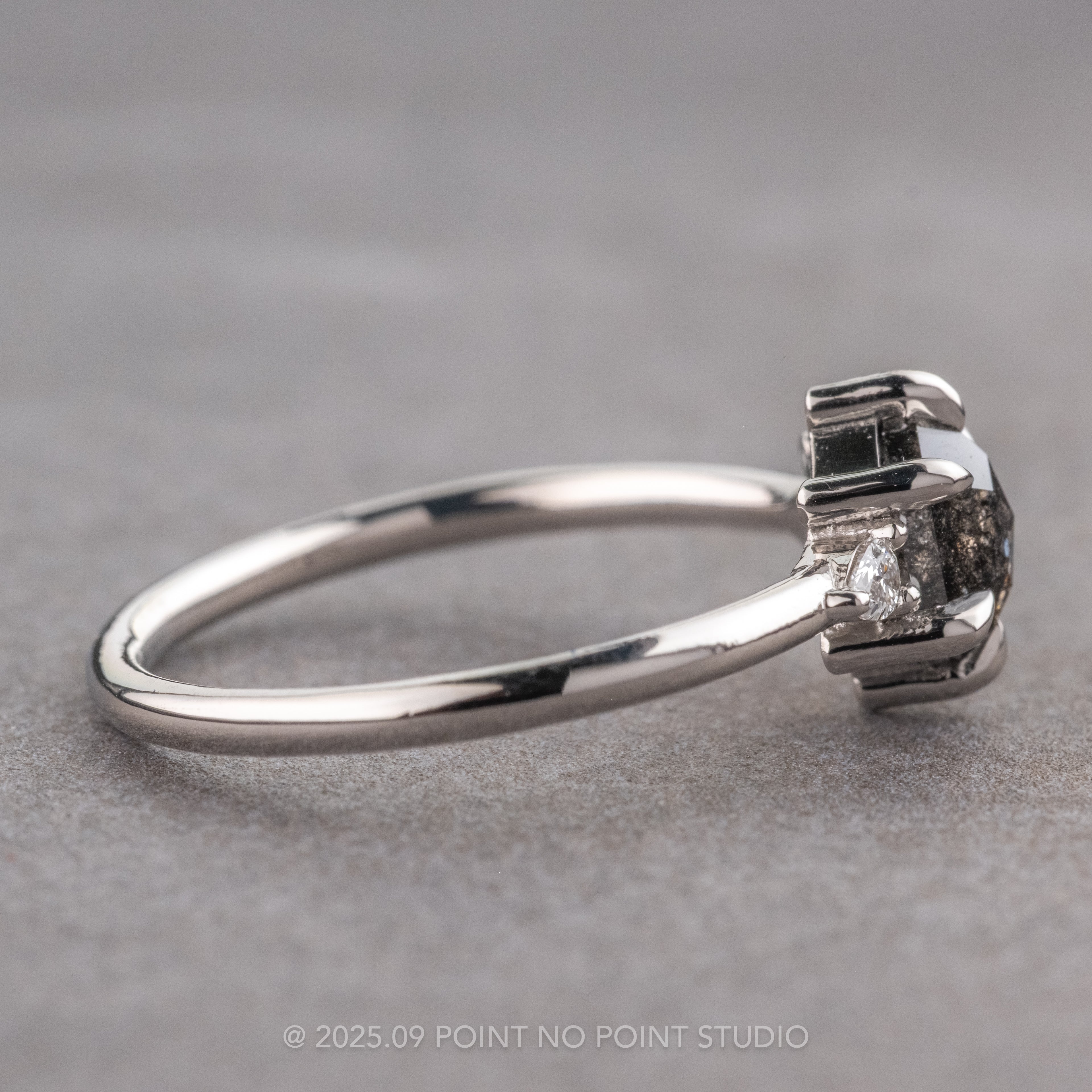 Black Speckled Hexagon Diamond Engagement Ring
