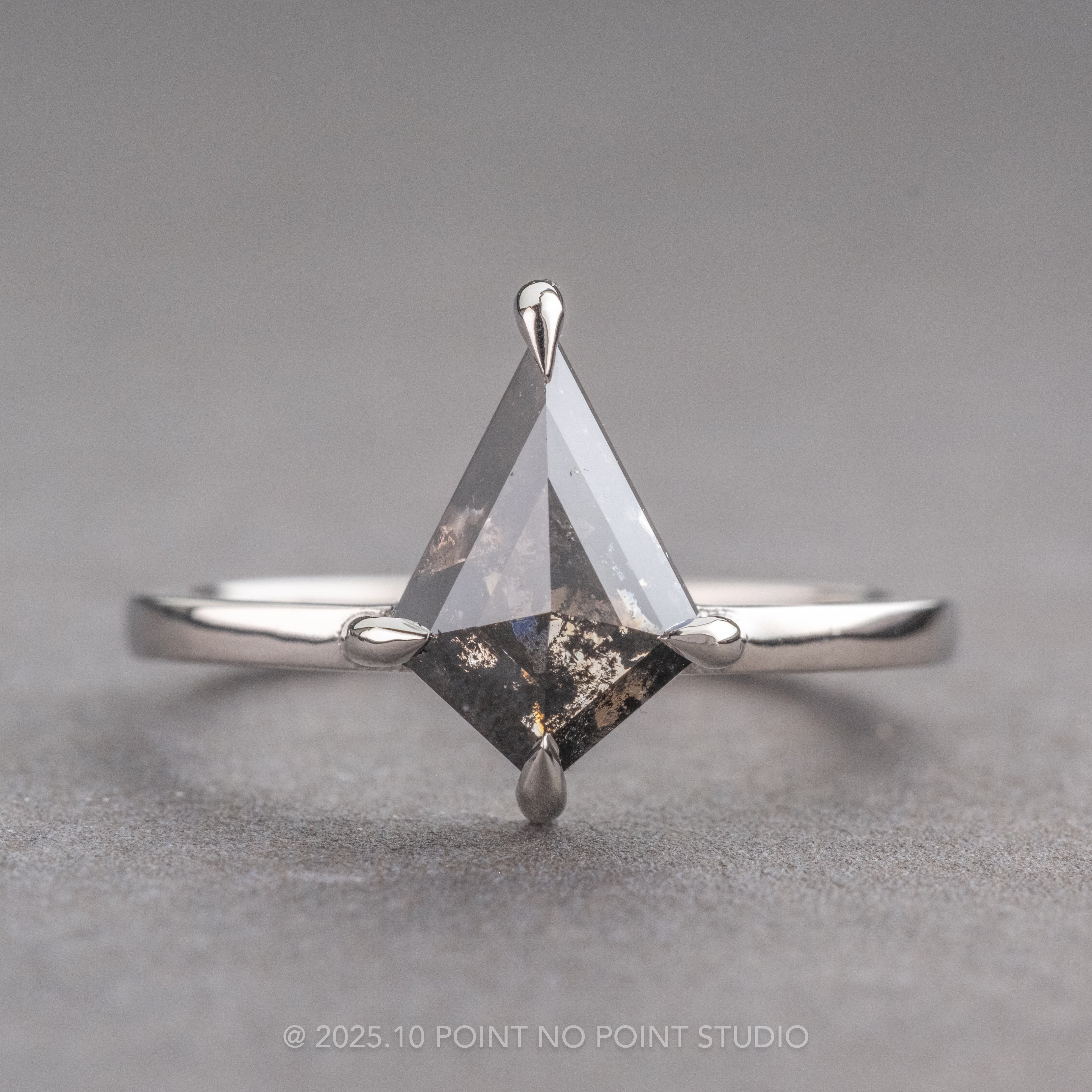 1.54 Carat Black Speckled Kite Diamond Engagement Ring, Jane Setting, Platinum