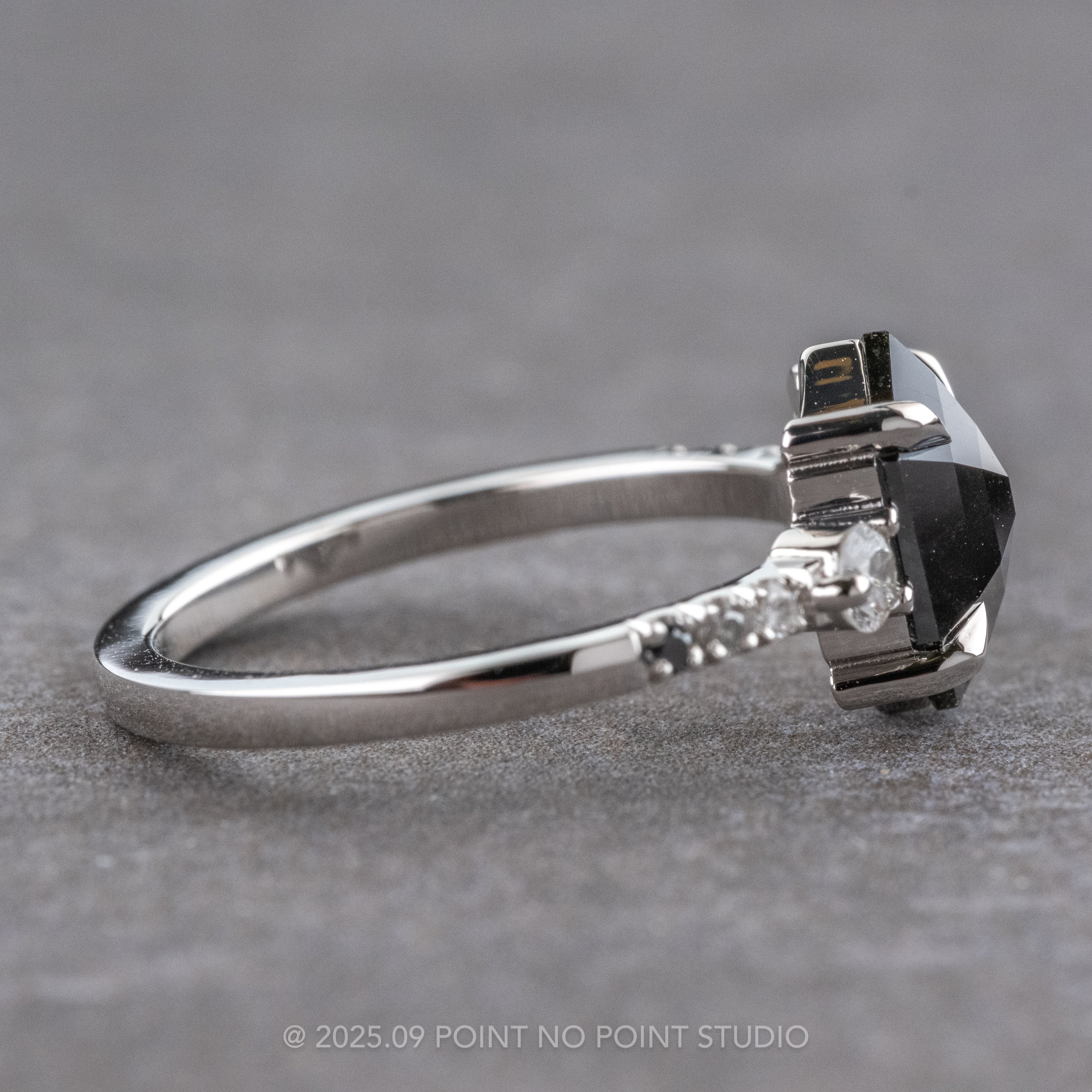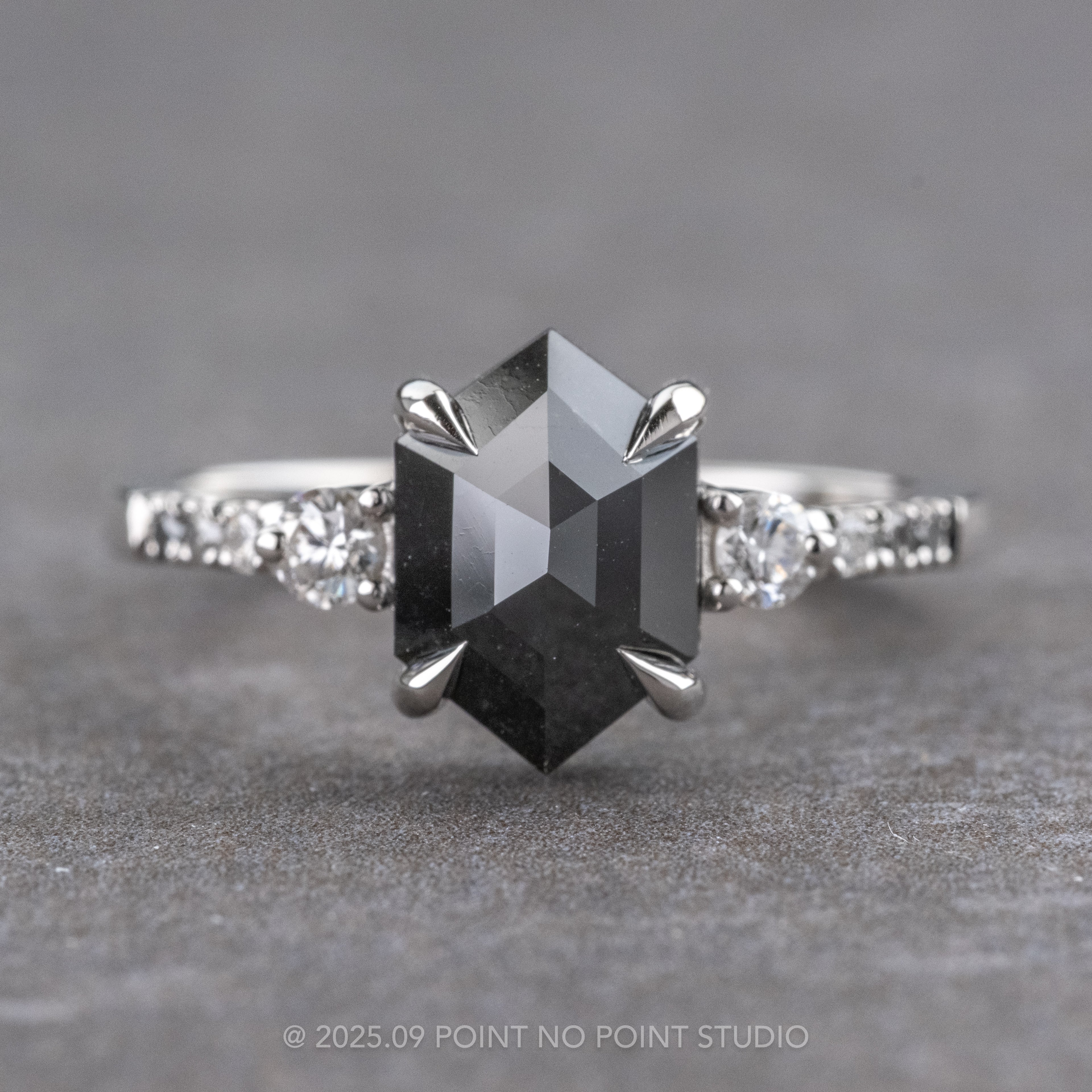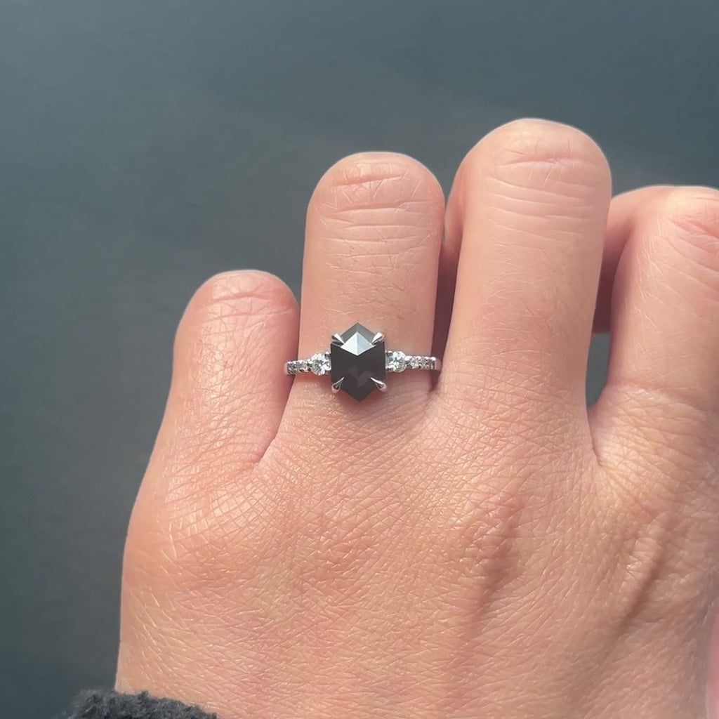 Black Hexagon Diamond Engagement Ring