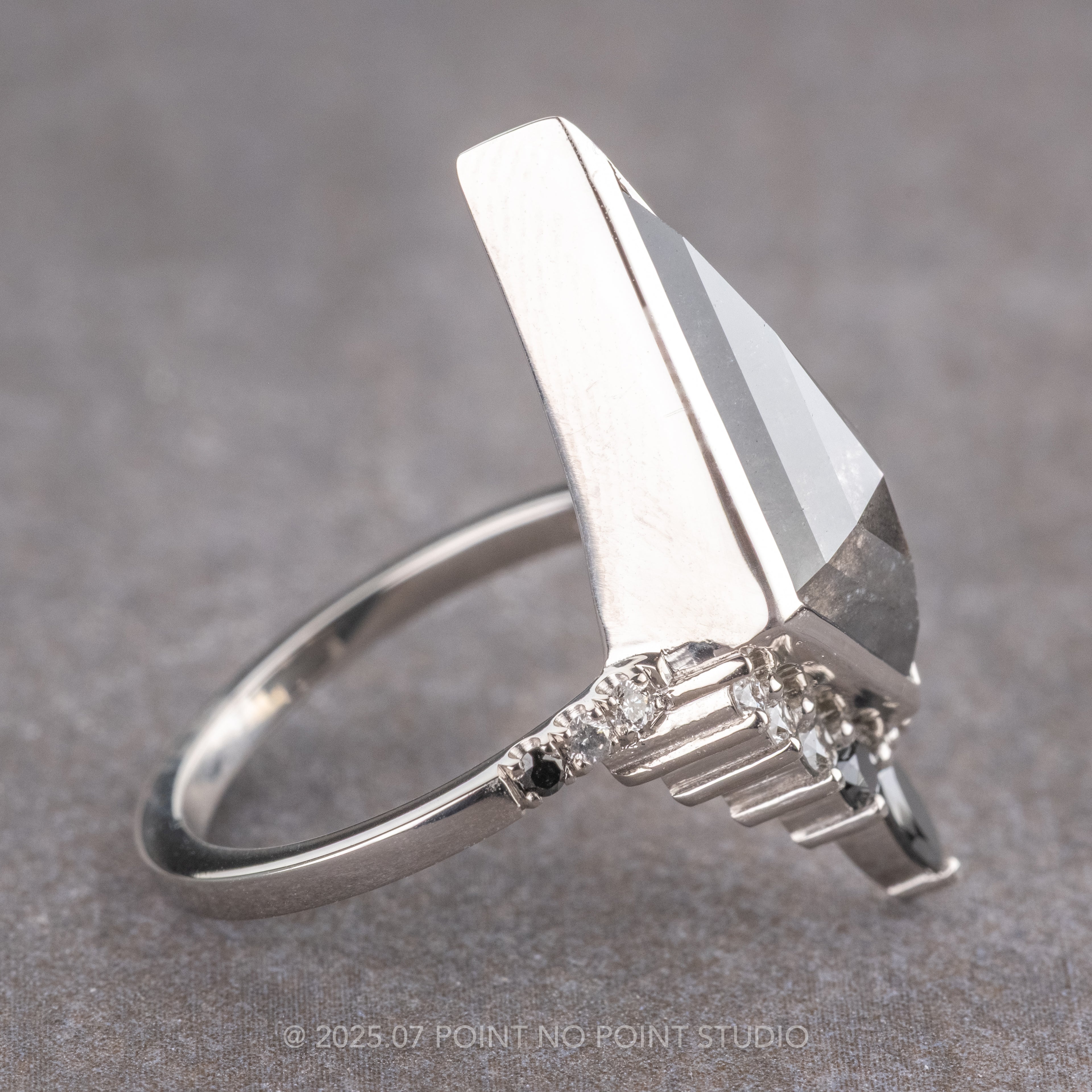2.20 Carat Black Speckled Kite Diamond Engagement Ring, Bezel Ombre Avaline Setting, Platinum