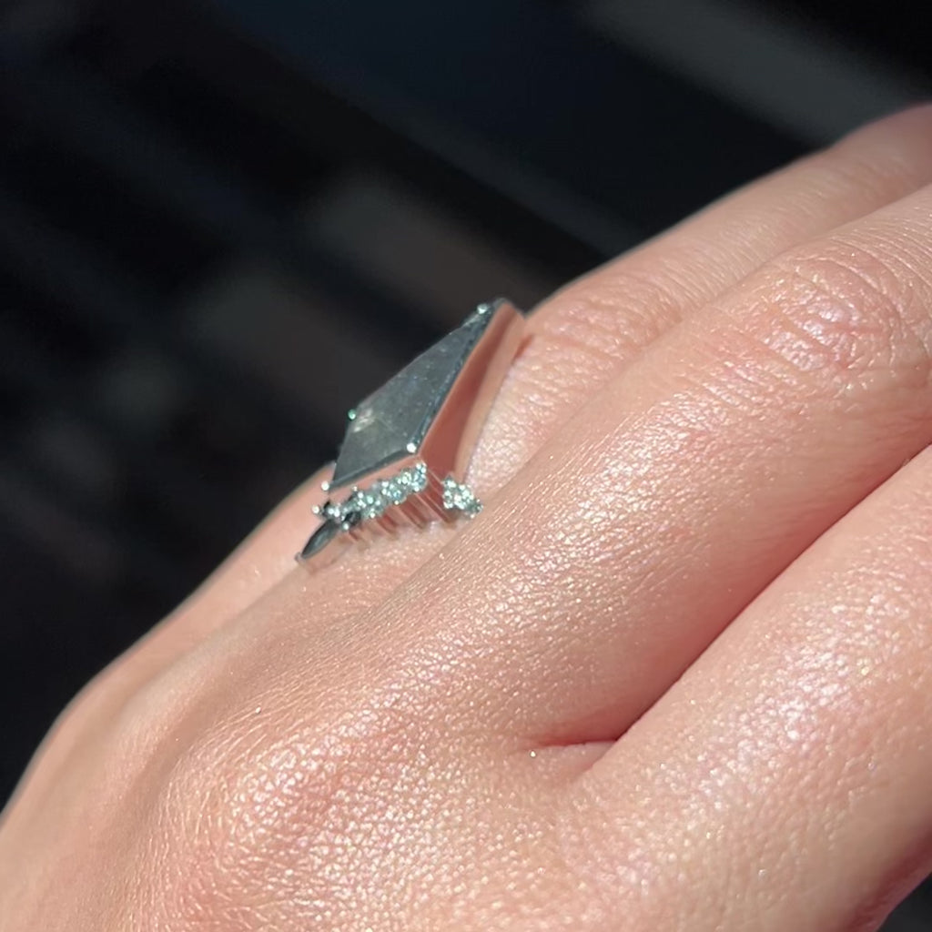 The rose cut diamond has been set in a low-profile bezel setting. The bezel fully encompasses the kite diamond. The entire ring is made of eco-friendly recycled platinum and sits directly on the finger making this ring extremely comfortable to wear.