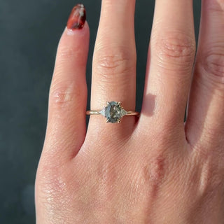 1.73 Carat Salt and Pepper Oval Diamond Engagement Ring, Zoe Setting, 14K Yellow Gold