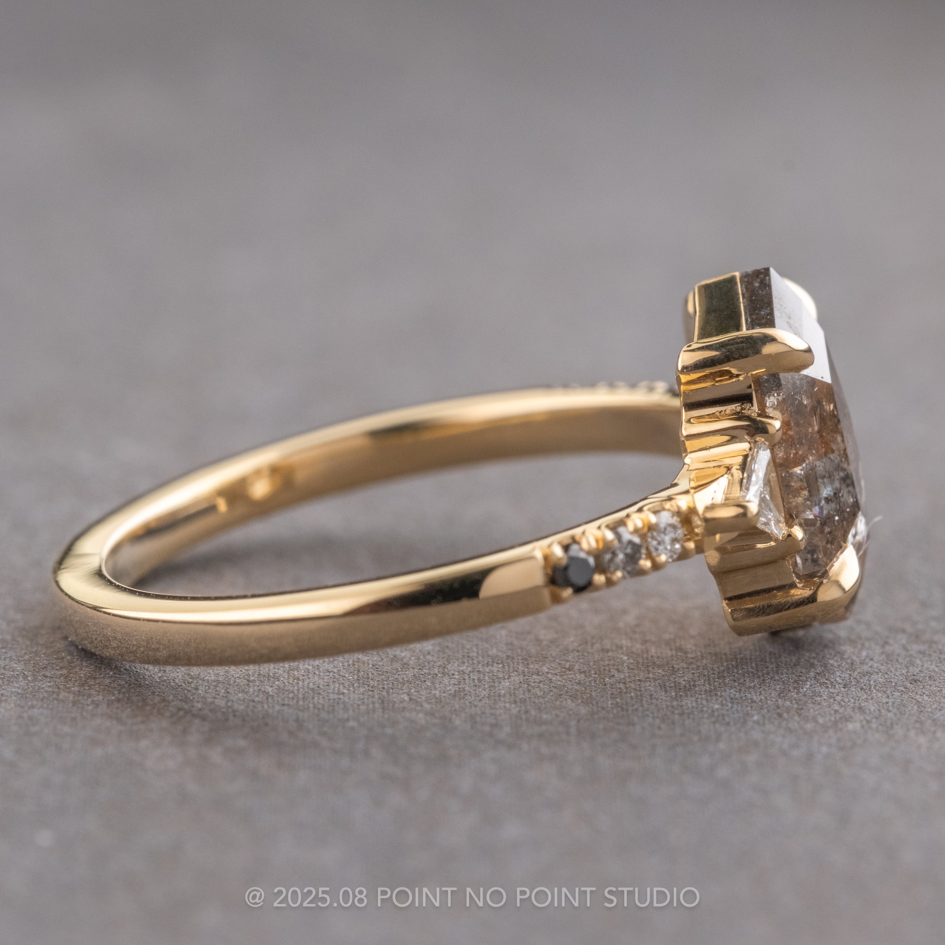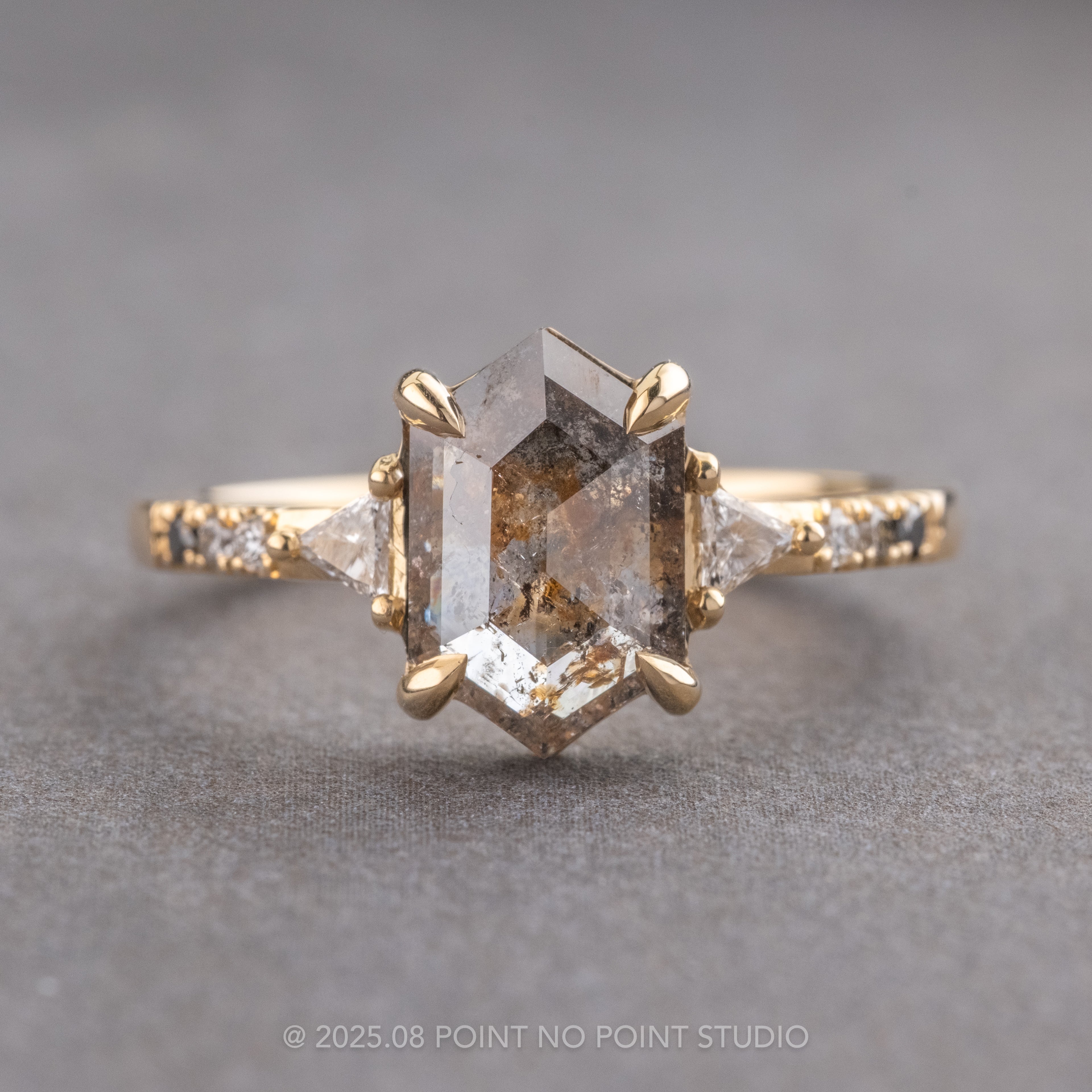 1.76 Carat Salt and Pepper Hexagon Diamond Engagement Ring, Ombre Eliza Setting, 14K Yellow Gold