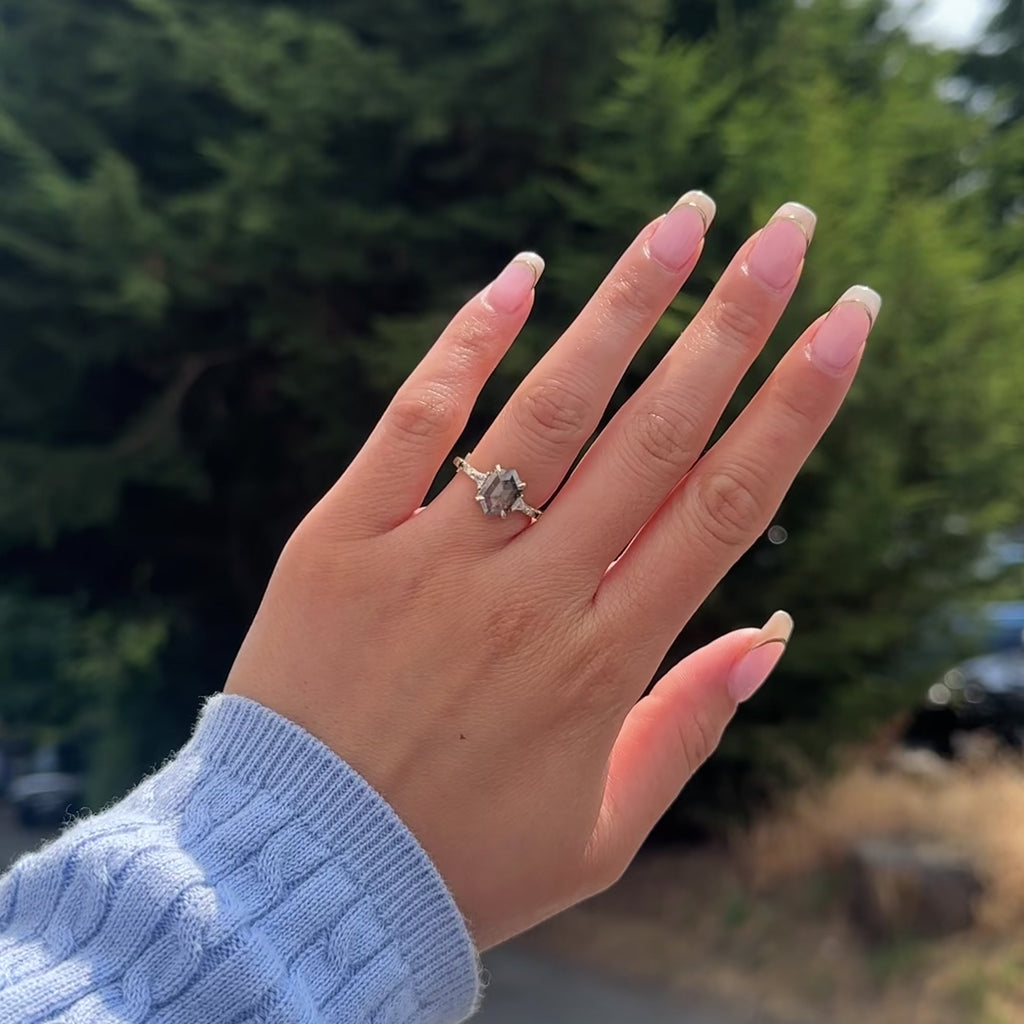 Salt and Pepper Hexagon Diamond Engagement Ring