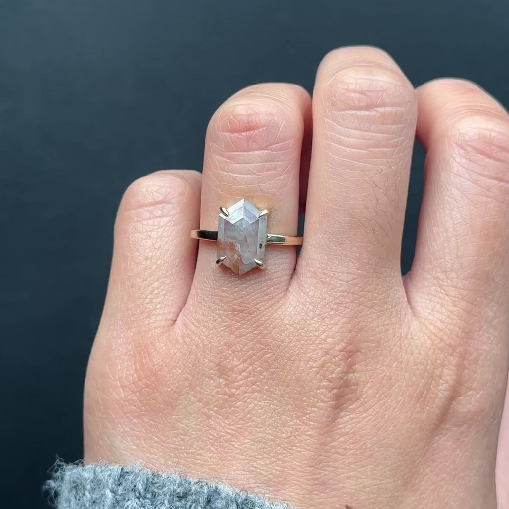 2.23 Carat Icy Grey with Orange Hexagon Diamond Engagement Ring, Jane Setting, 14k Yellow Gold