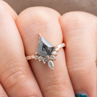 1.91 Carat Black Kite Diamond Engagement Ring, Ombre Flora Setting, 14k Rose Gold
