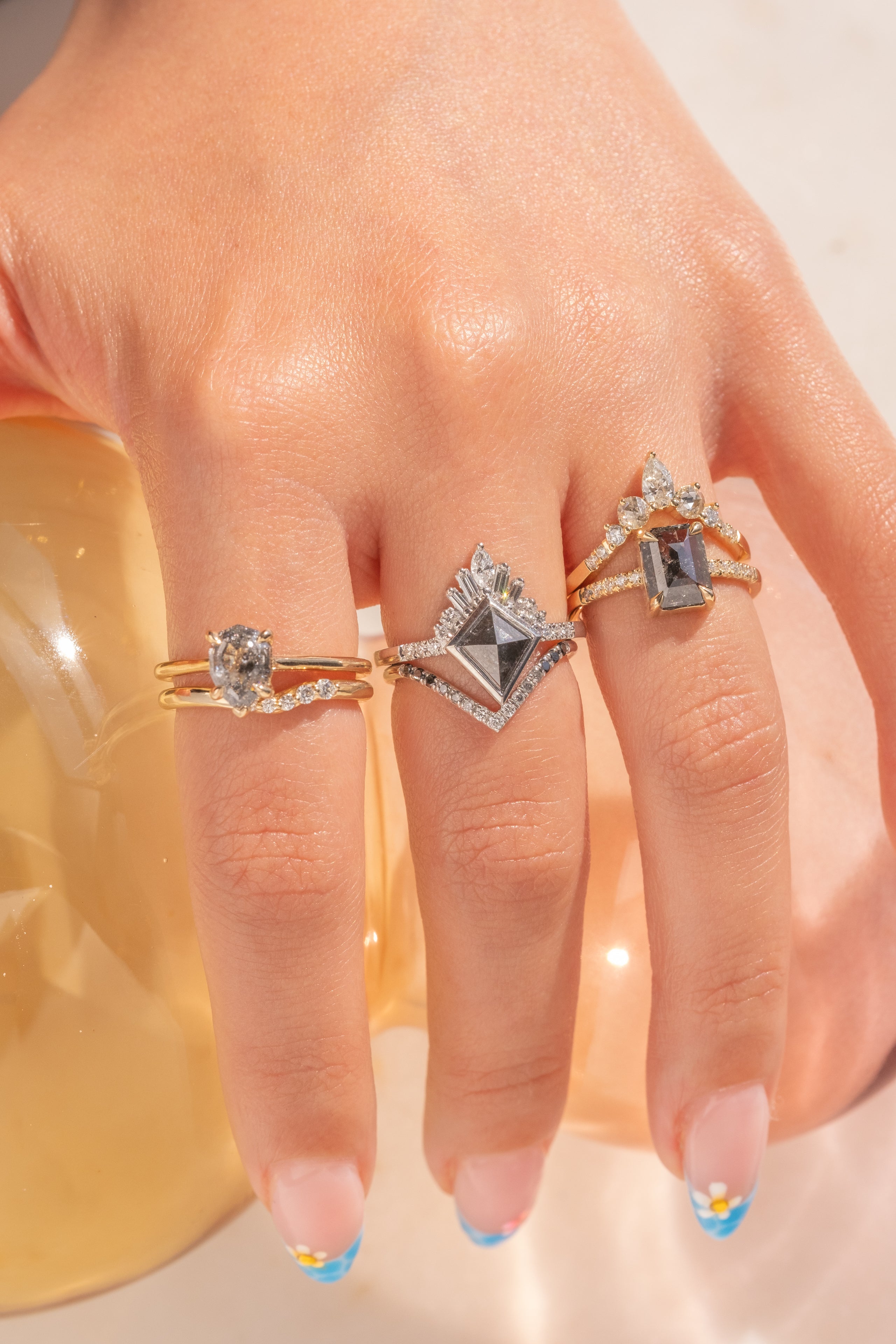 Wedding Rings:Ā This engagement ring can be stacked withĀ ANY of our hundreds of wedding ring options, we use the same engagement ring CAD measurements to build the wedding ring around it to ensure a great stacking set.Ā