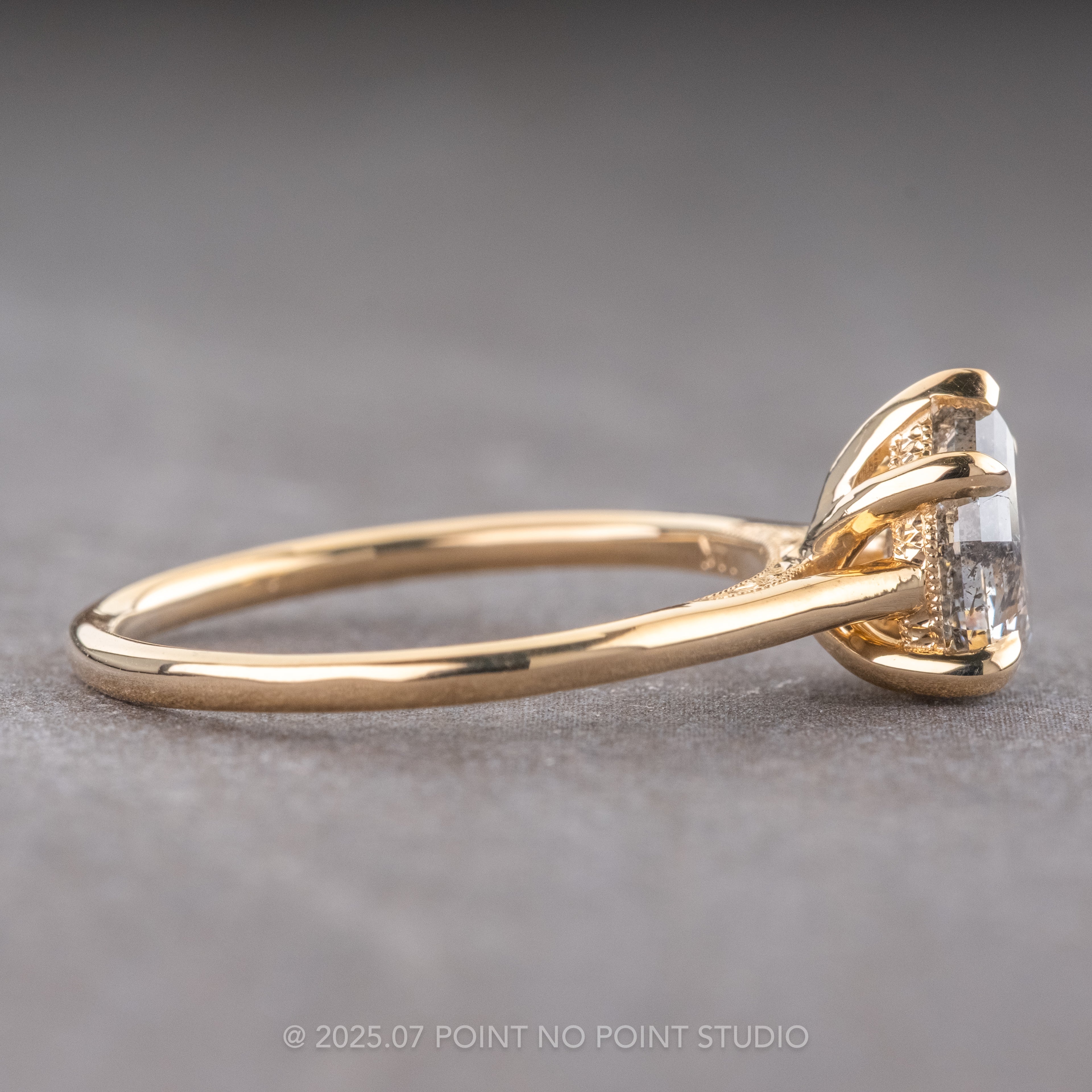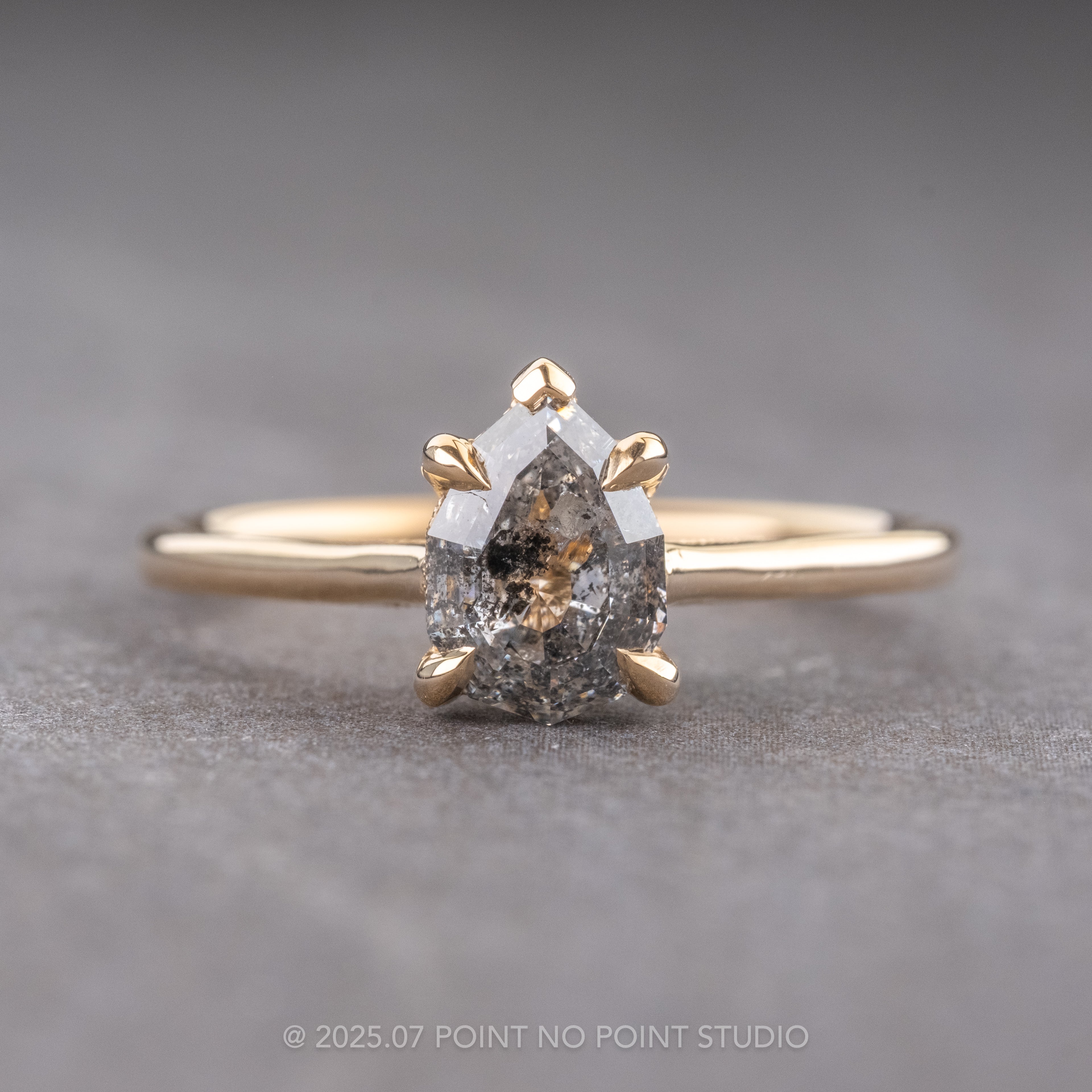 1.40 Carat Canadian Salt and Pepper Geometric Pear Diamond Engagement Ring, Judith Setting, 14k Yellow Gold