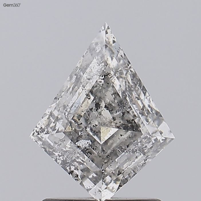The ring features a gorgeous 1.38 carat Canadian salt and pepper brilliant cut kite diamond. The diamond is a top quality natural diamond; it is semi-translucent with unique tones and facets that catch the light. We have a very rare opportunity to offer these Canadian origin salt and pepper diamonds to our customers. Salt and Pepper diamonds have only been discovered in the Gahcho Kué mine in Northern Canada. We have a very limited quantity of these stones due to the very limited supply on the market.