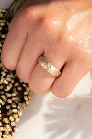 Hexagon Diamond Mens Wedding Band, Comfort Fit, 14K Yellow Gold, Half Round Matte Finish