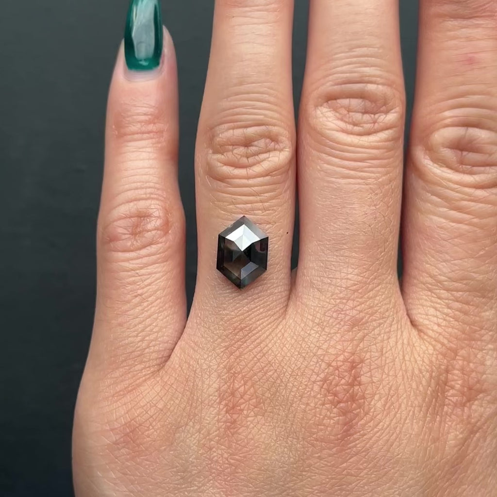 2.61 Carat Smoky Black Rose Cut Hexagon Diamond