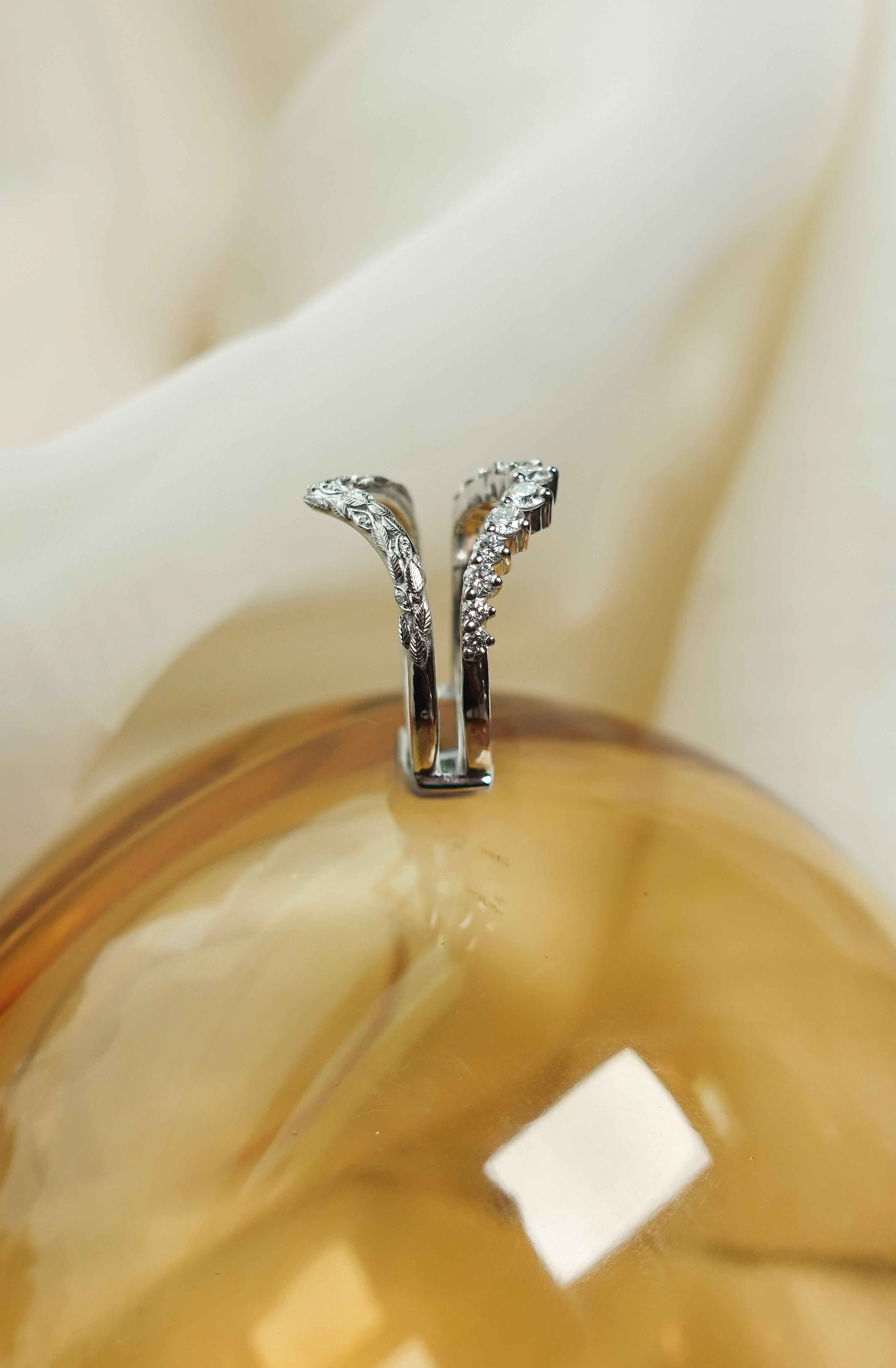 Both rings are created in Platinum.