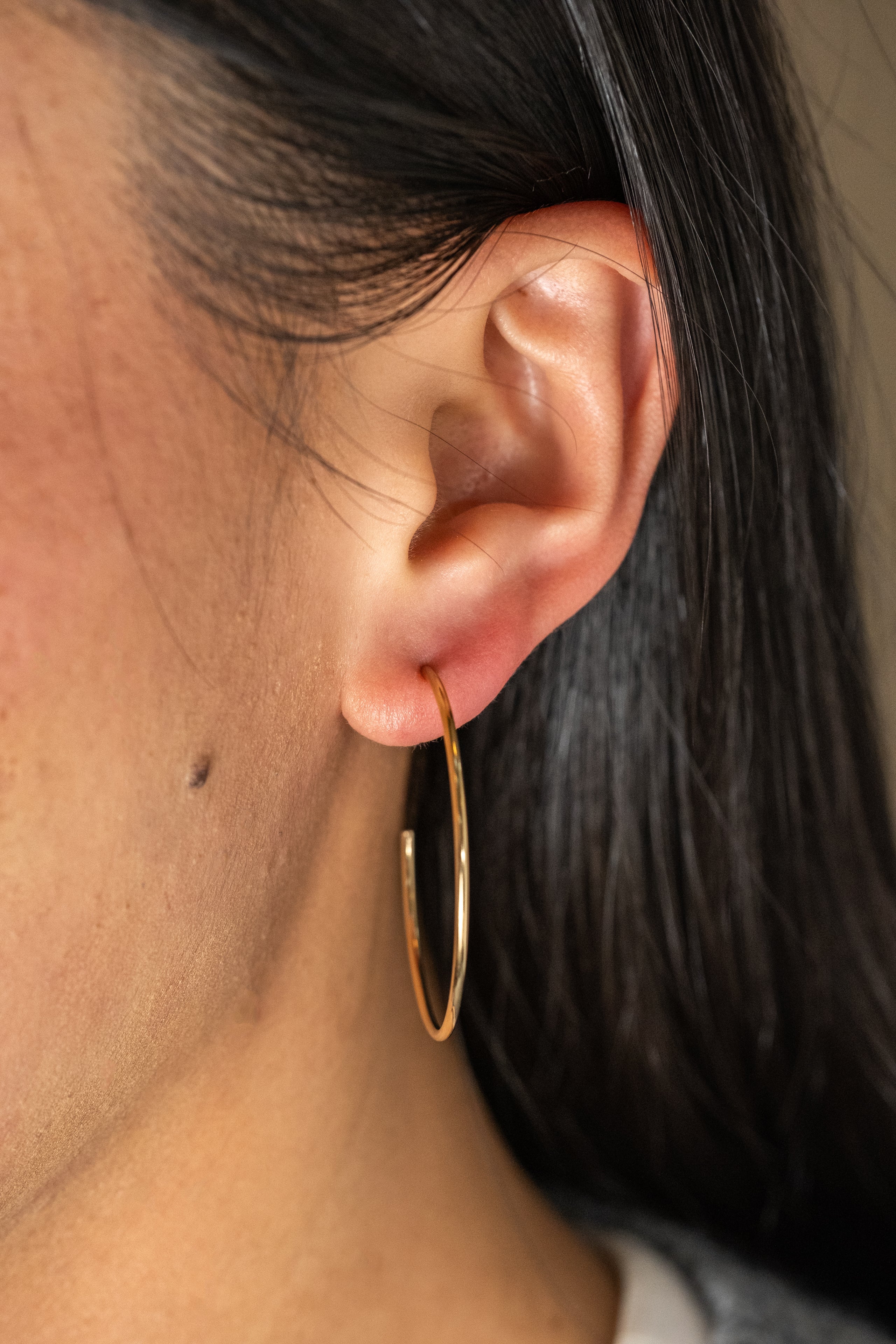 Timeless and chic, these 14k yellow gold filled hoop earrings are easy to wear and compliment existing jewelry that you wear everyday!