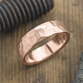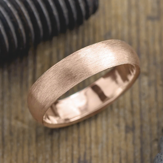 6mm 14K Peach Gold Comfort Fit Mens Wedding Band, Half Round Matte Finish