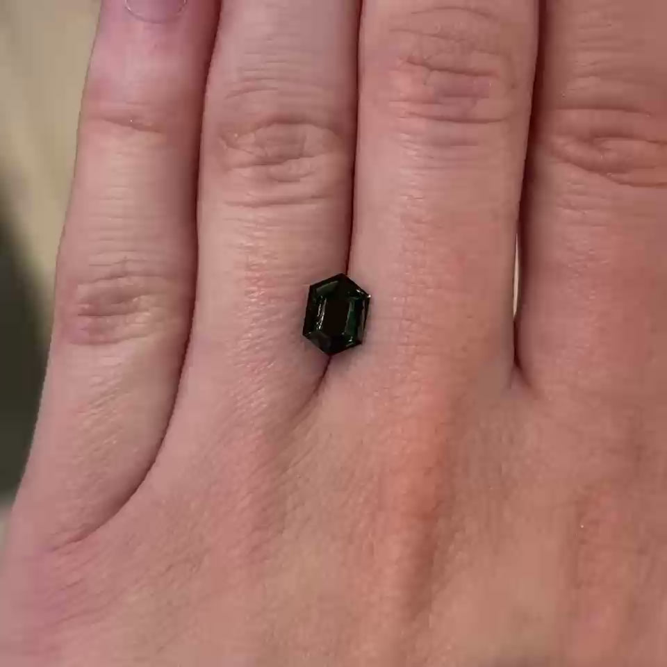 1.59 Carat Green Step Cut Hexagon Australian Sapphire