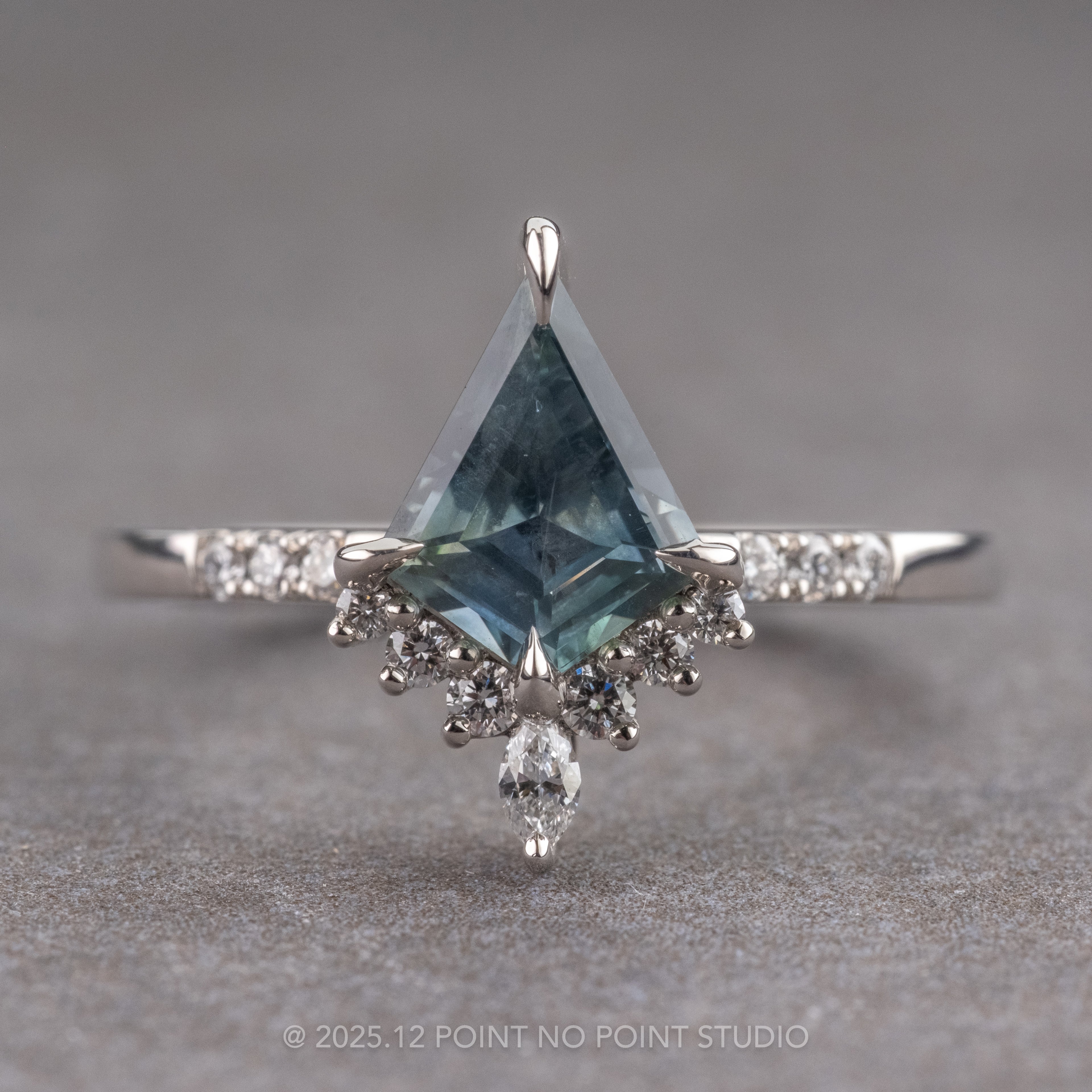 1.26 Carat Kite Montana Sapphire and Diamond Engagement Ring, Avaline Setting, Platinum