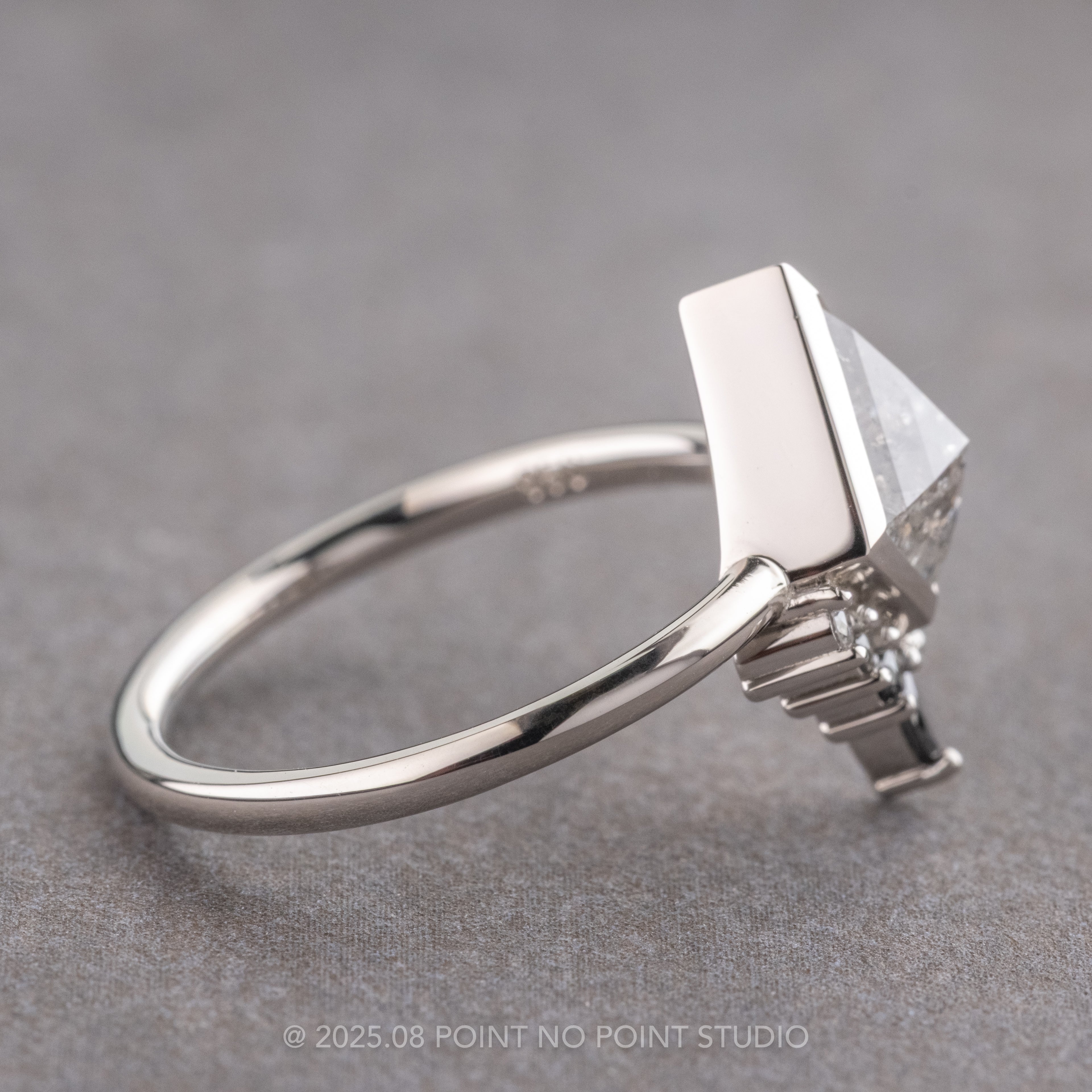 1.57 Carat Salt and Pepper Kite Diamond Engagement Ring, Bezel Ombre Ava Setting, Platinum