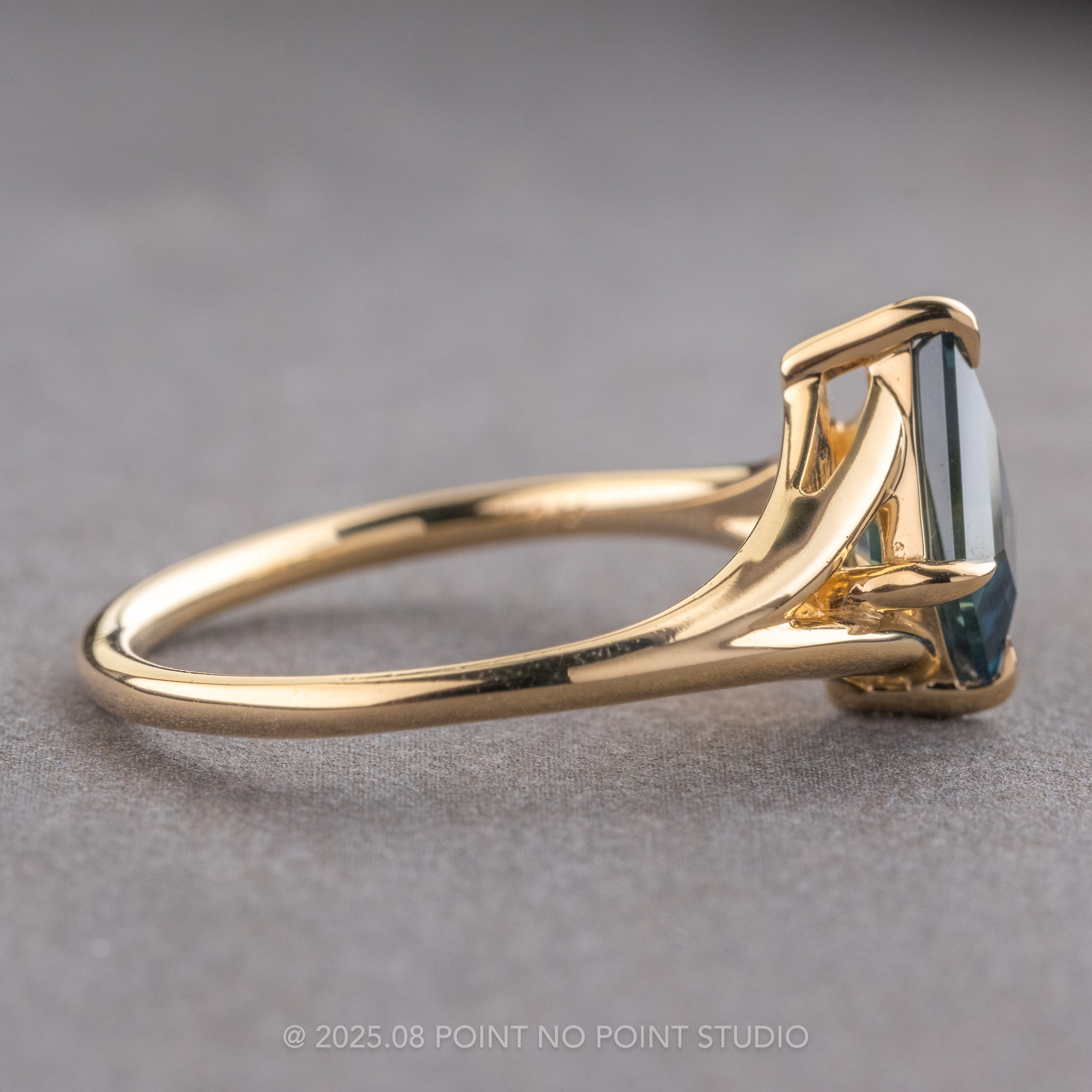 1.98 Carat Blue Kite Sapphire Engagement Ring, Split Shank Jane Setting, 14K Yellow Gold
