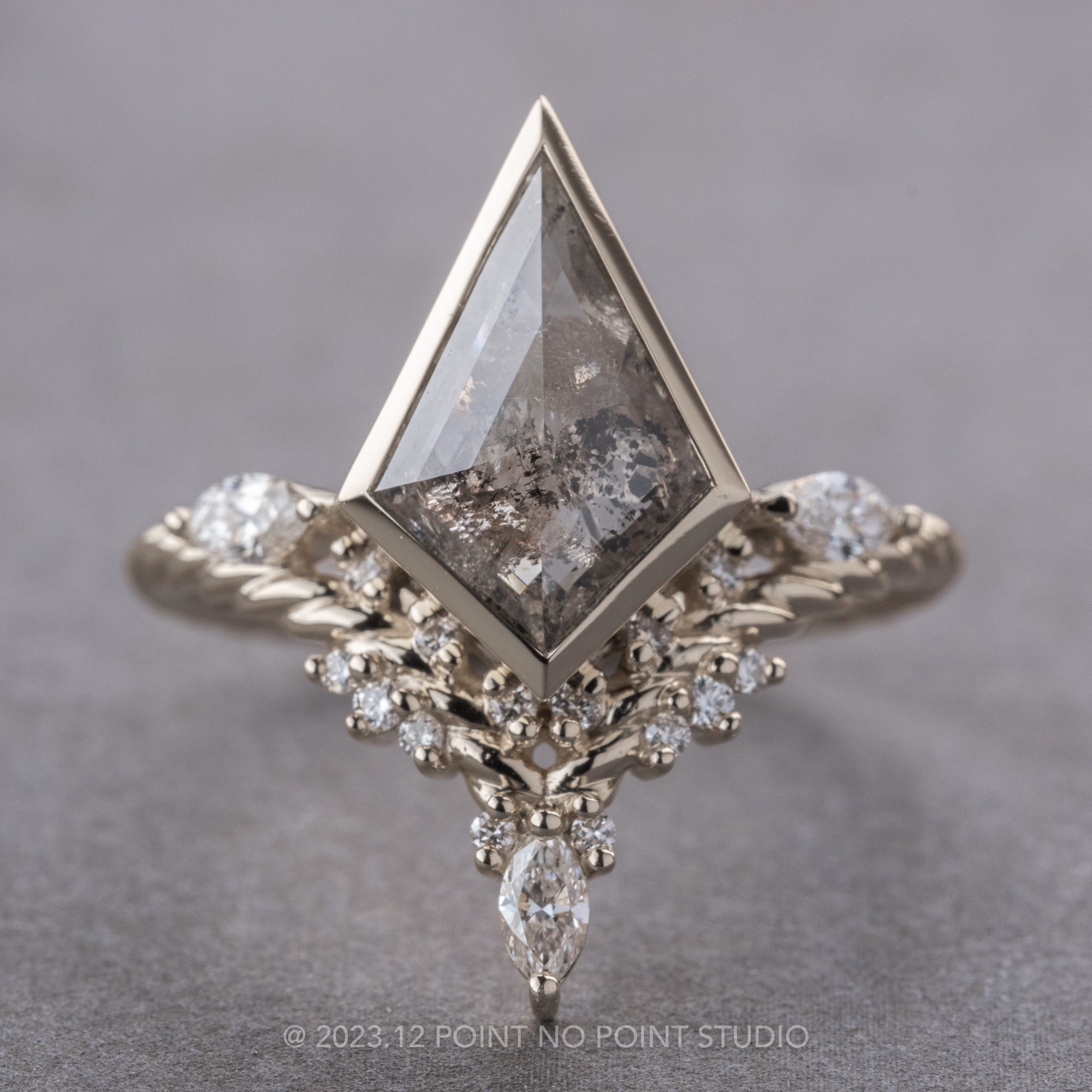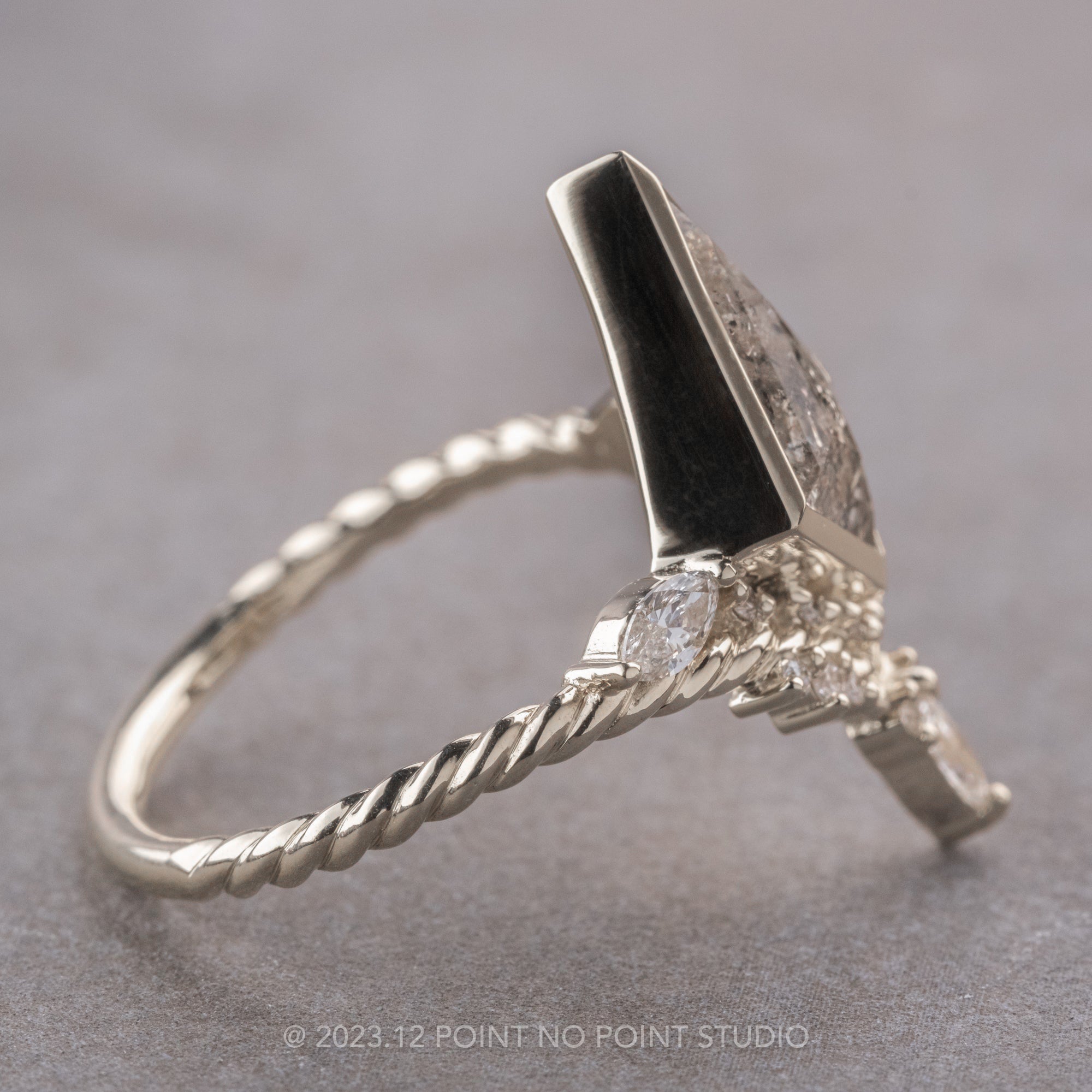 2.58 Carat Salt and Pepper Kite Diamond Engagement Ring, Bezel Andromeda Setting, Platinum