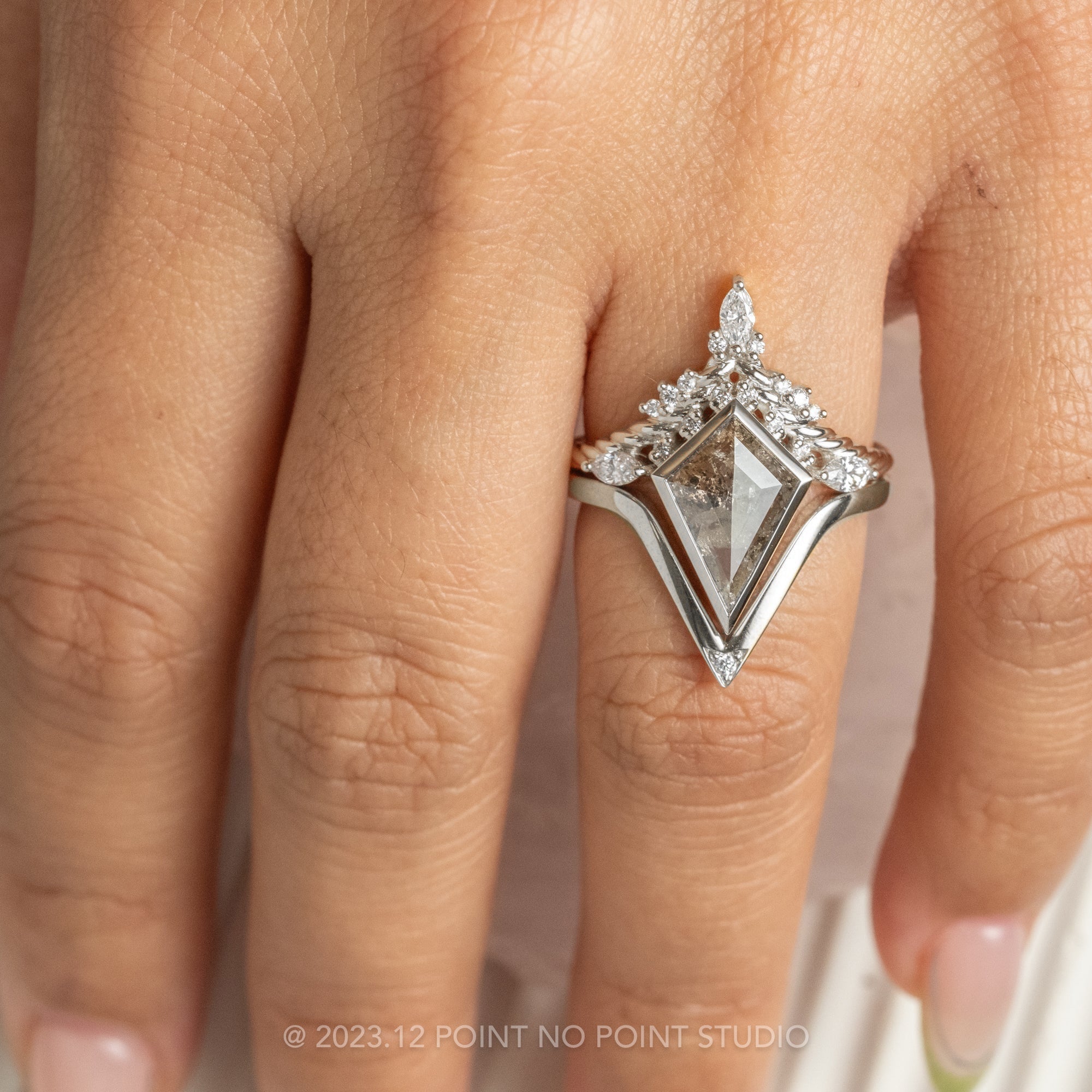 Salt and Pepper Kite Diamond Engagement Ring