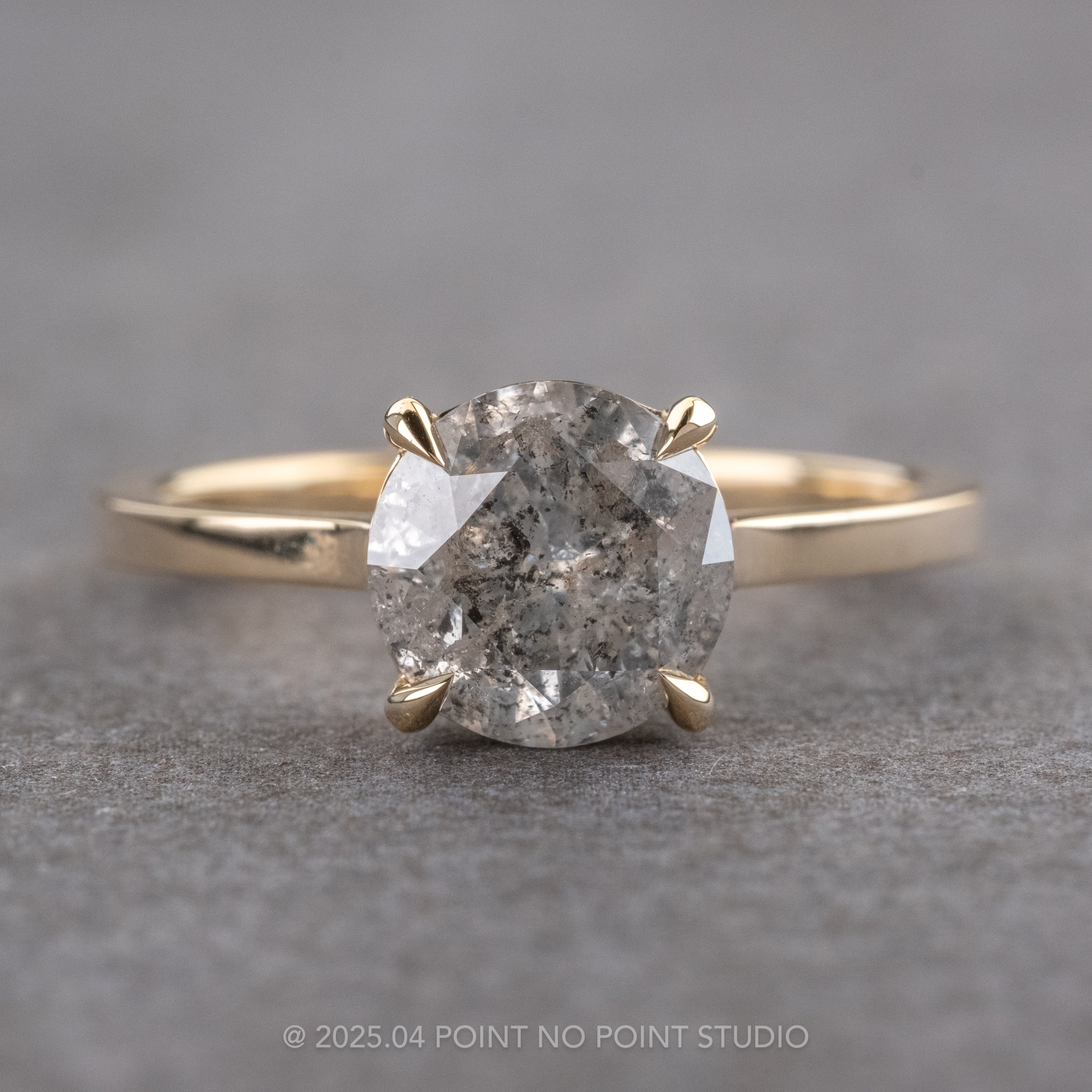 2.05 Carat Salt and Pepper Round Diamond Engagement Ring, Jade Setting, 14k Yellow Gold