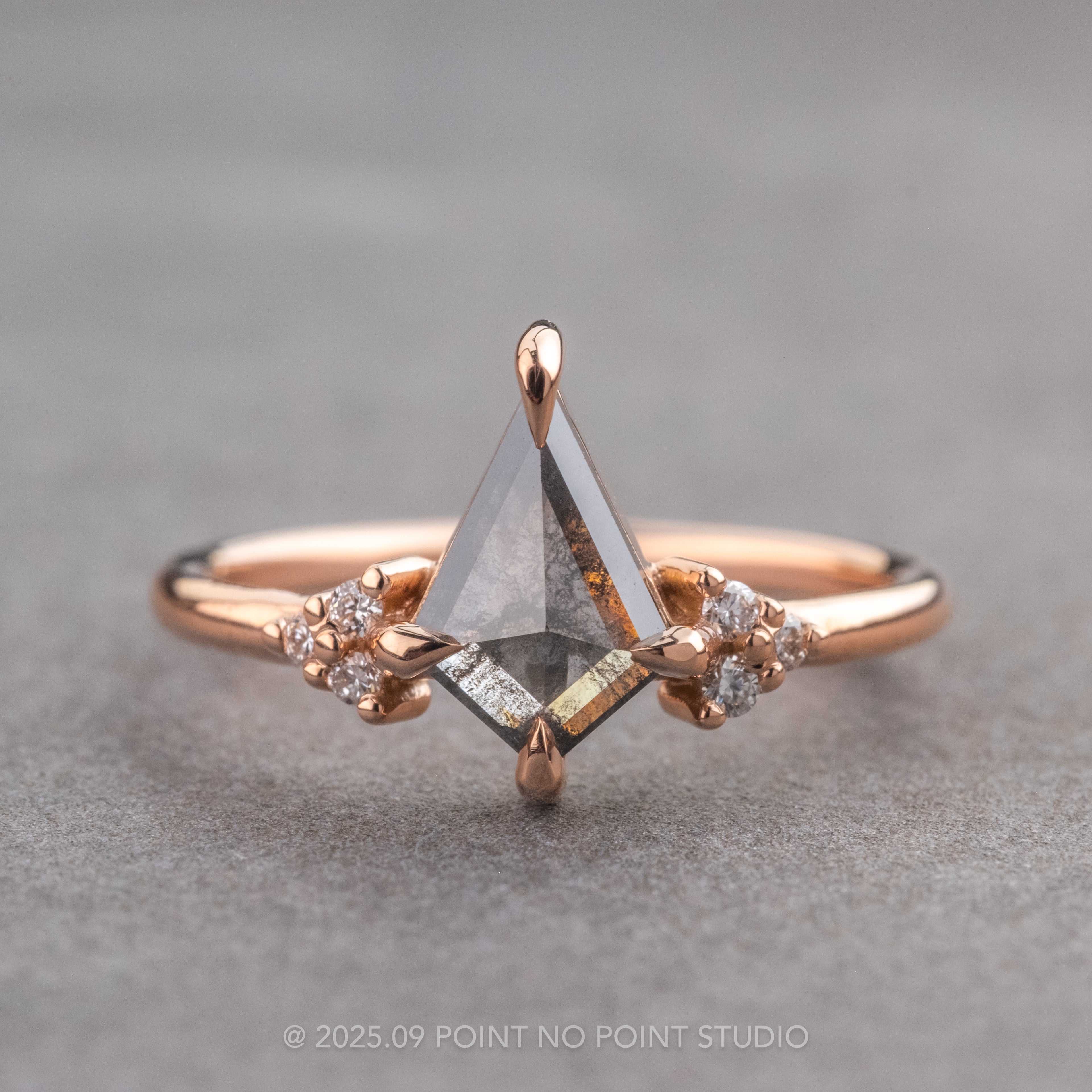 1.03 Carat Salt and Pepper Kite Diamond Engagement Ring, Quinn Setting, 14k Rose Gold