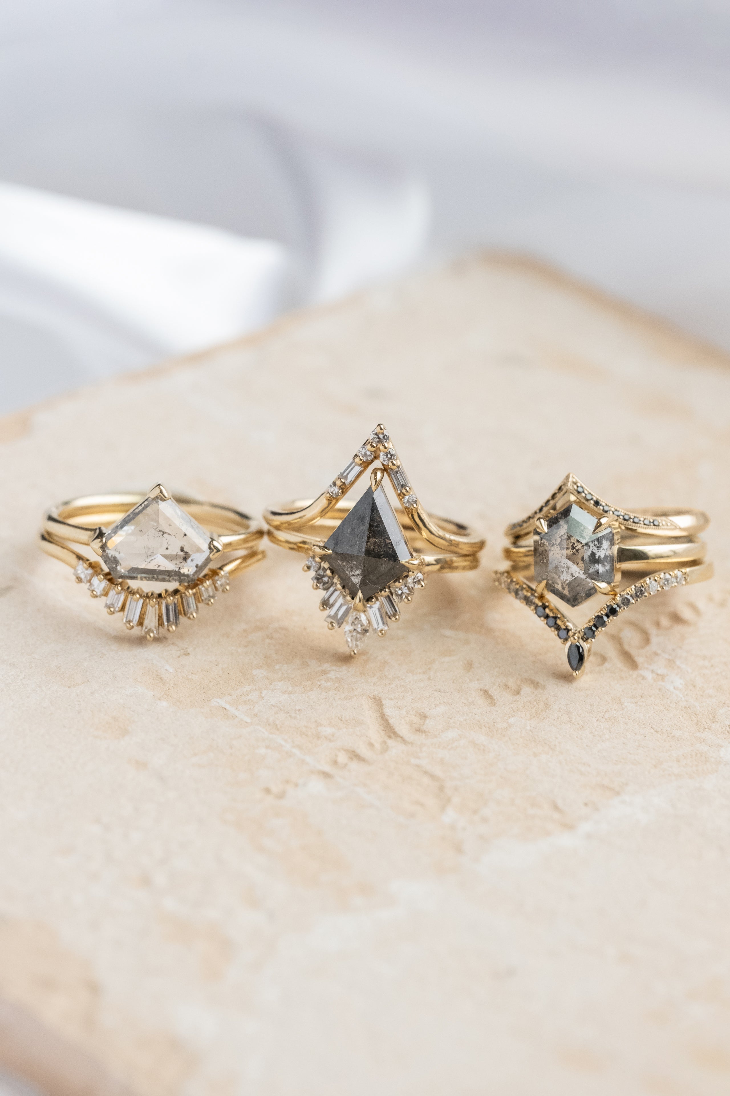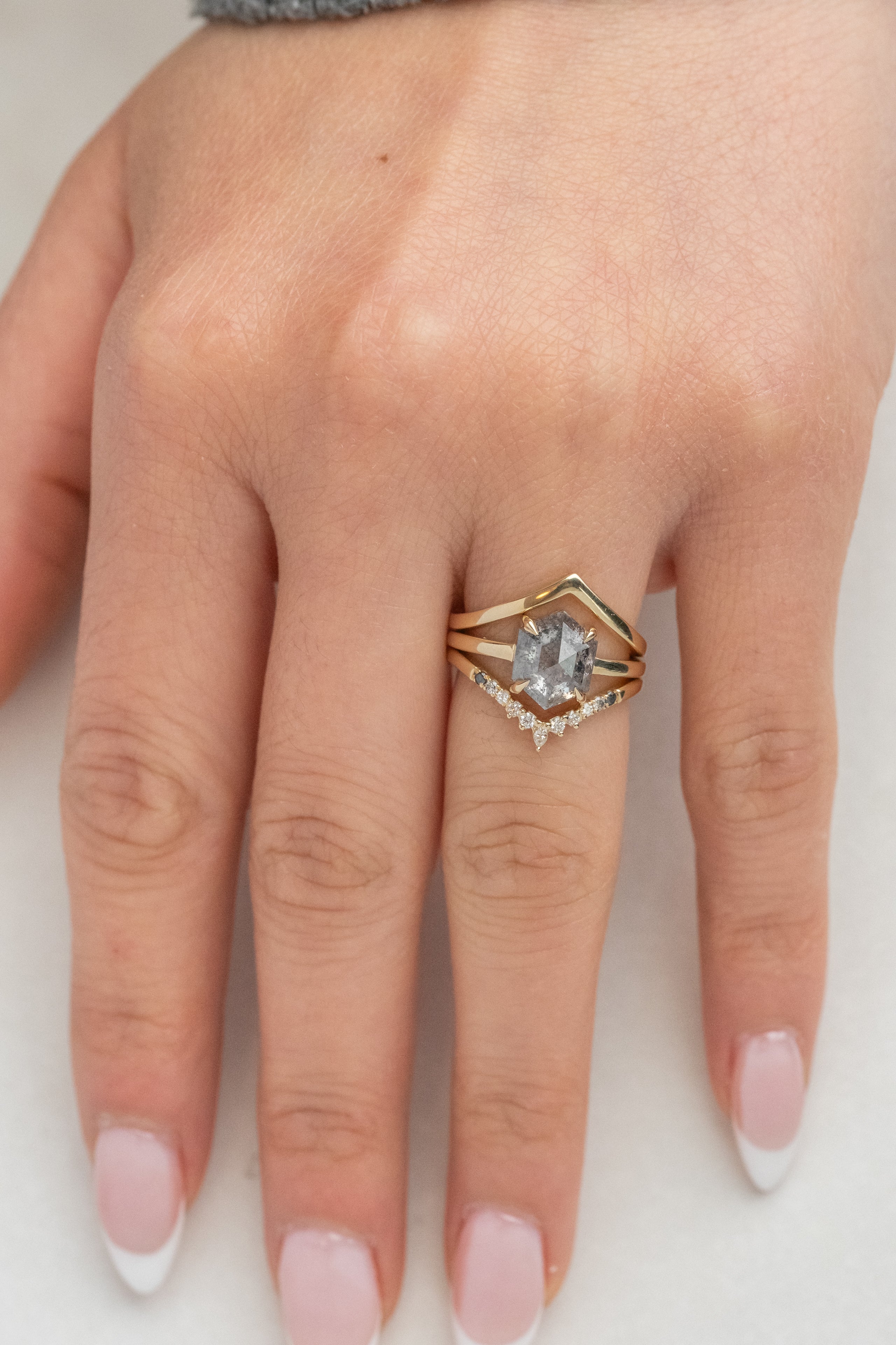 Canadian Salt and Pepper Hexagon Diamond Engagement Ring