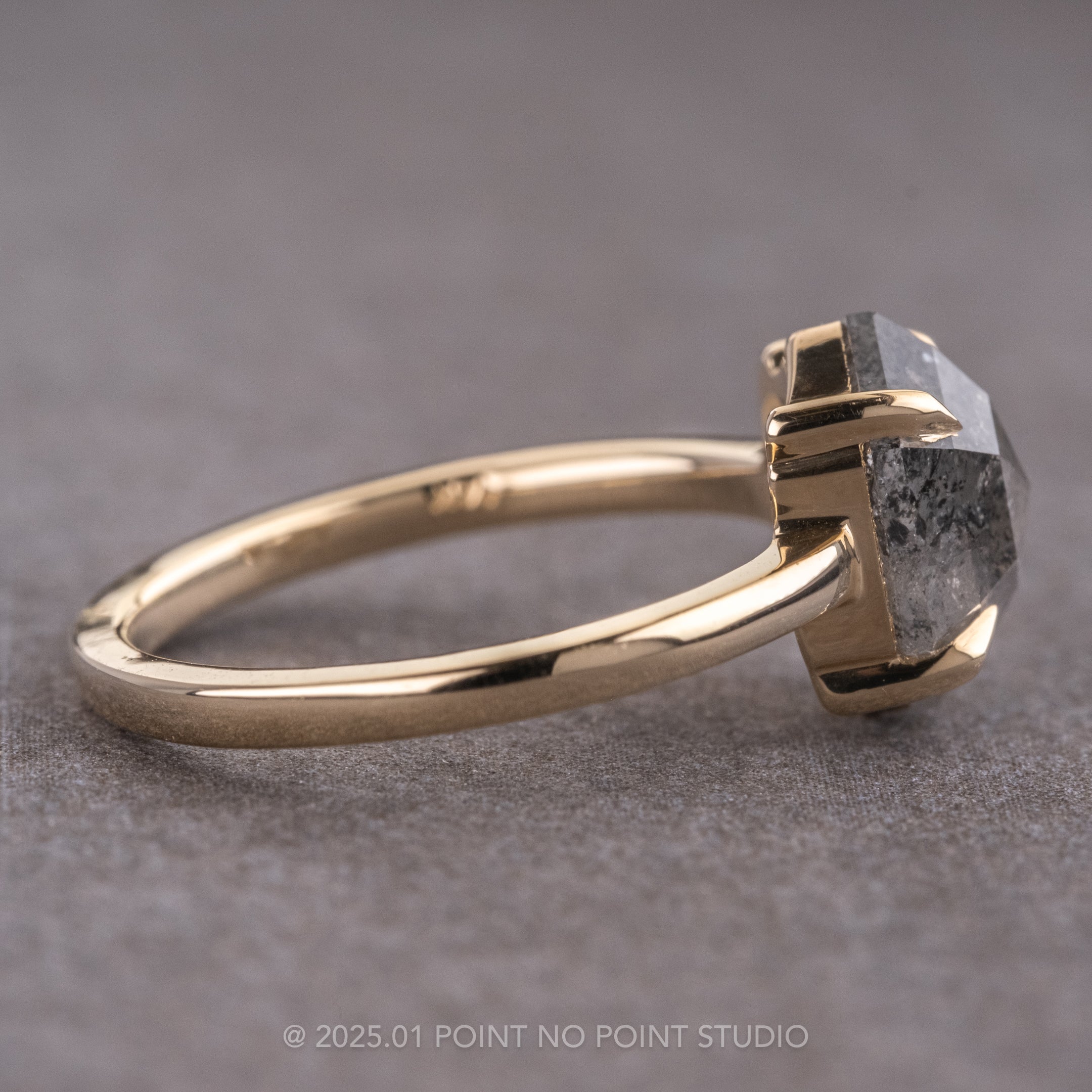 1.74 Carat Canadian Salt and Pepper Hexagon Diamond Engagement Ring, Jane Setting, 14k Yellow Gold
