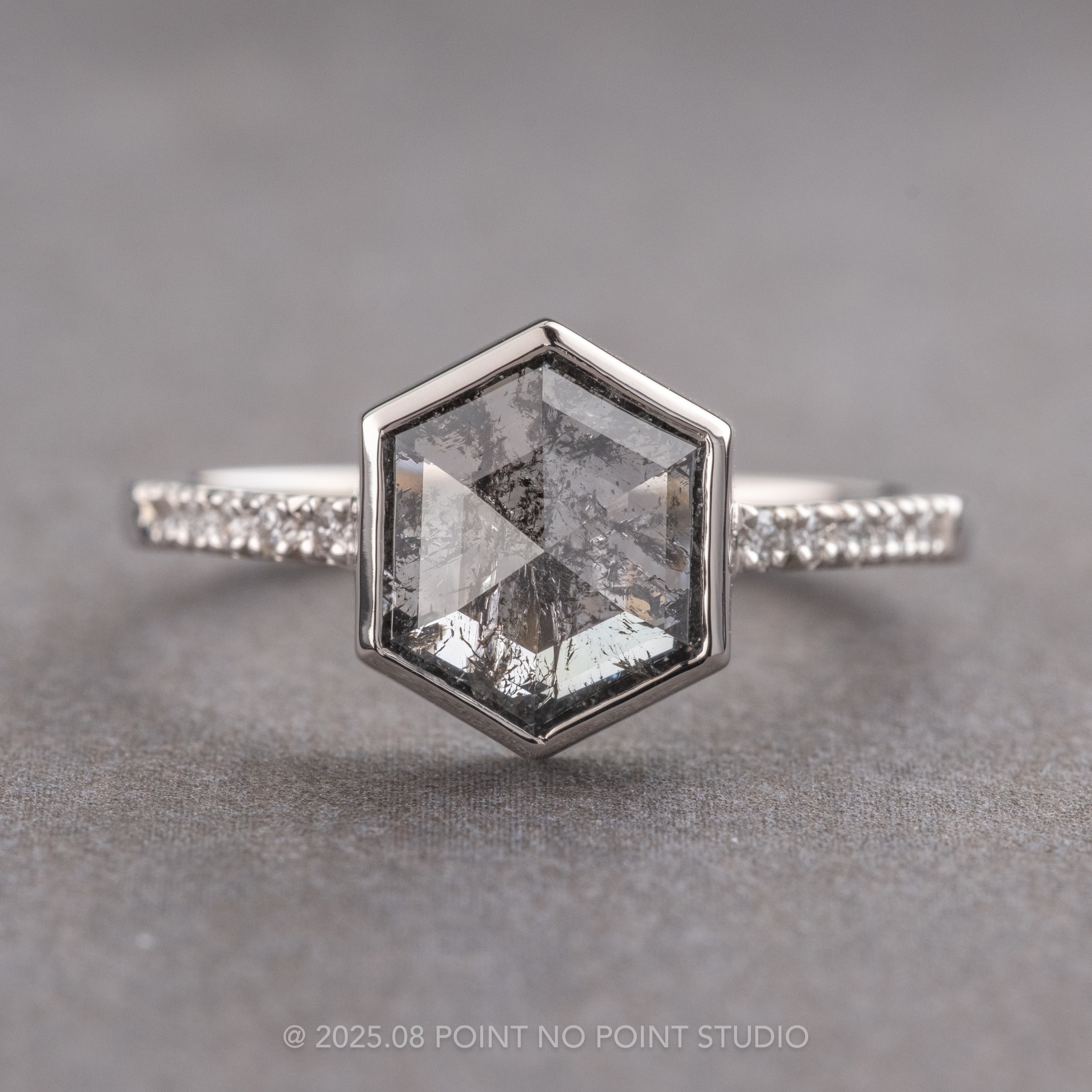2.03 Carat Salt and Pepper Hexagon Diamond Engagement Ring, Bezel Jules Setting, Platinum