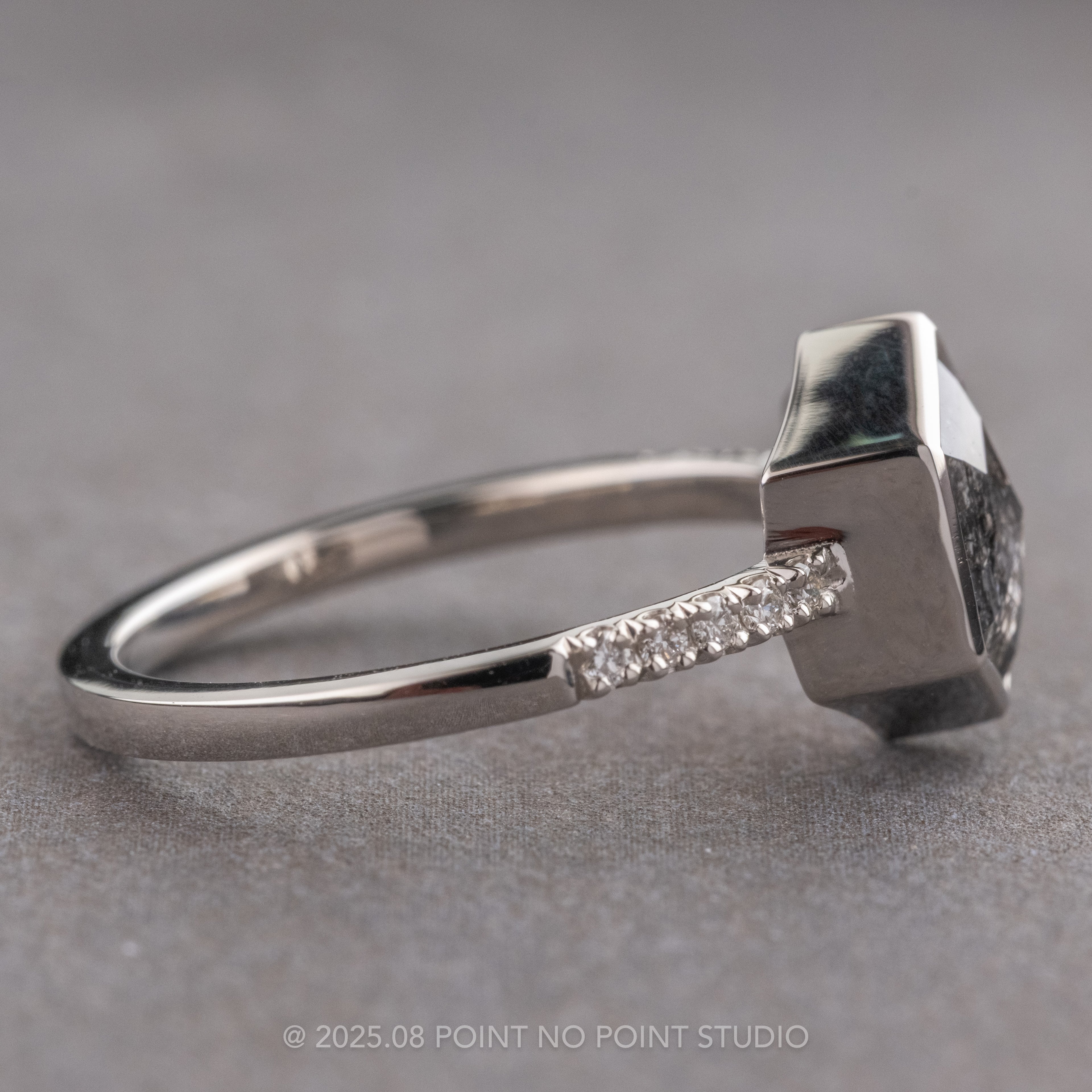 Salt and Pepper Hexagon Diamond Engagement Ring