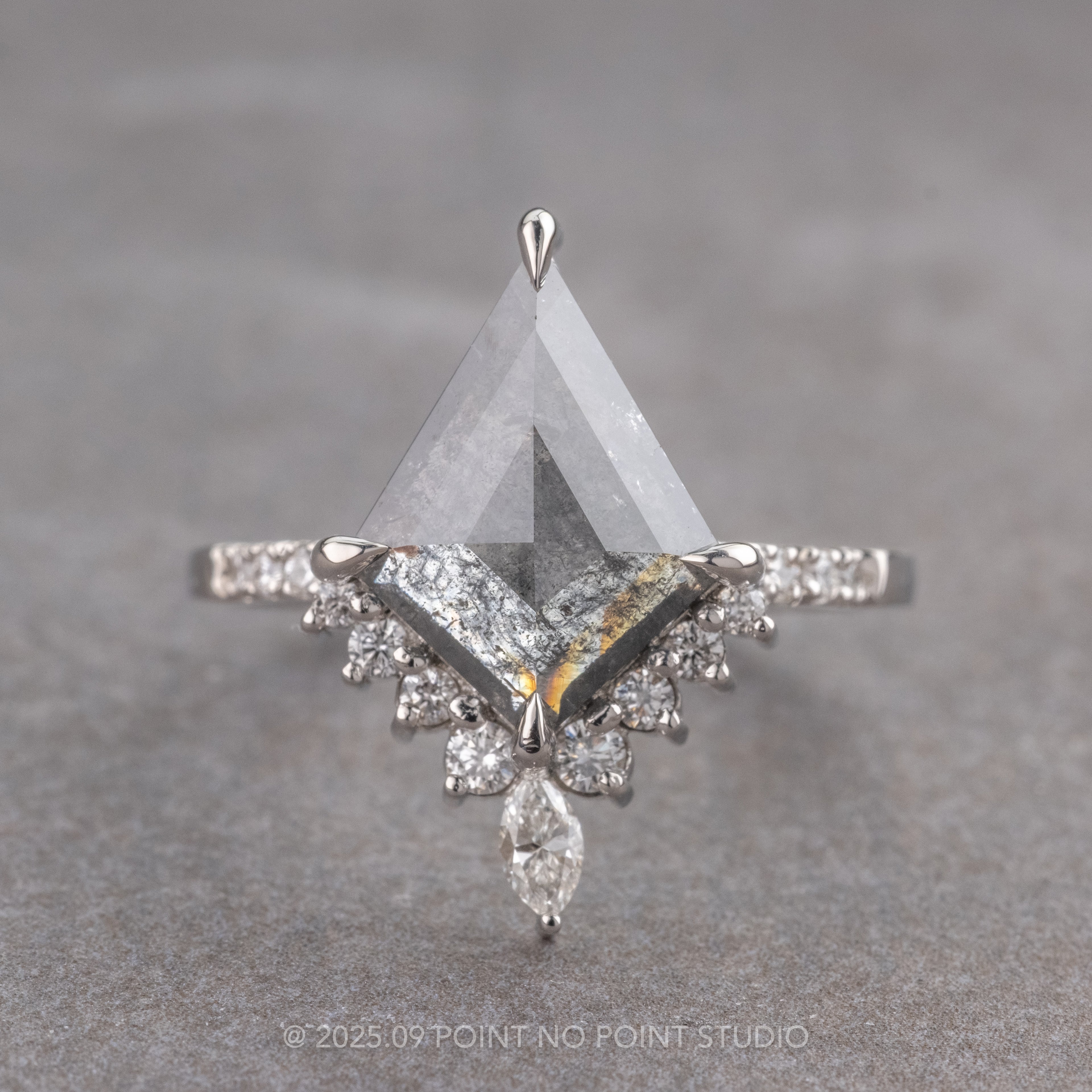 2.32 Carat Salt and Pepper Kite Diamond Engagement Ring, Avaline Setting, Platinum