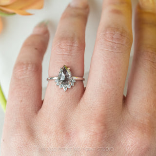 1.61 Carat Salt and Pepper Pear Diamond Engagement Ring, Avaline Setting, Platinum