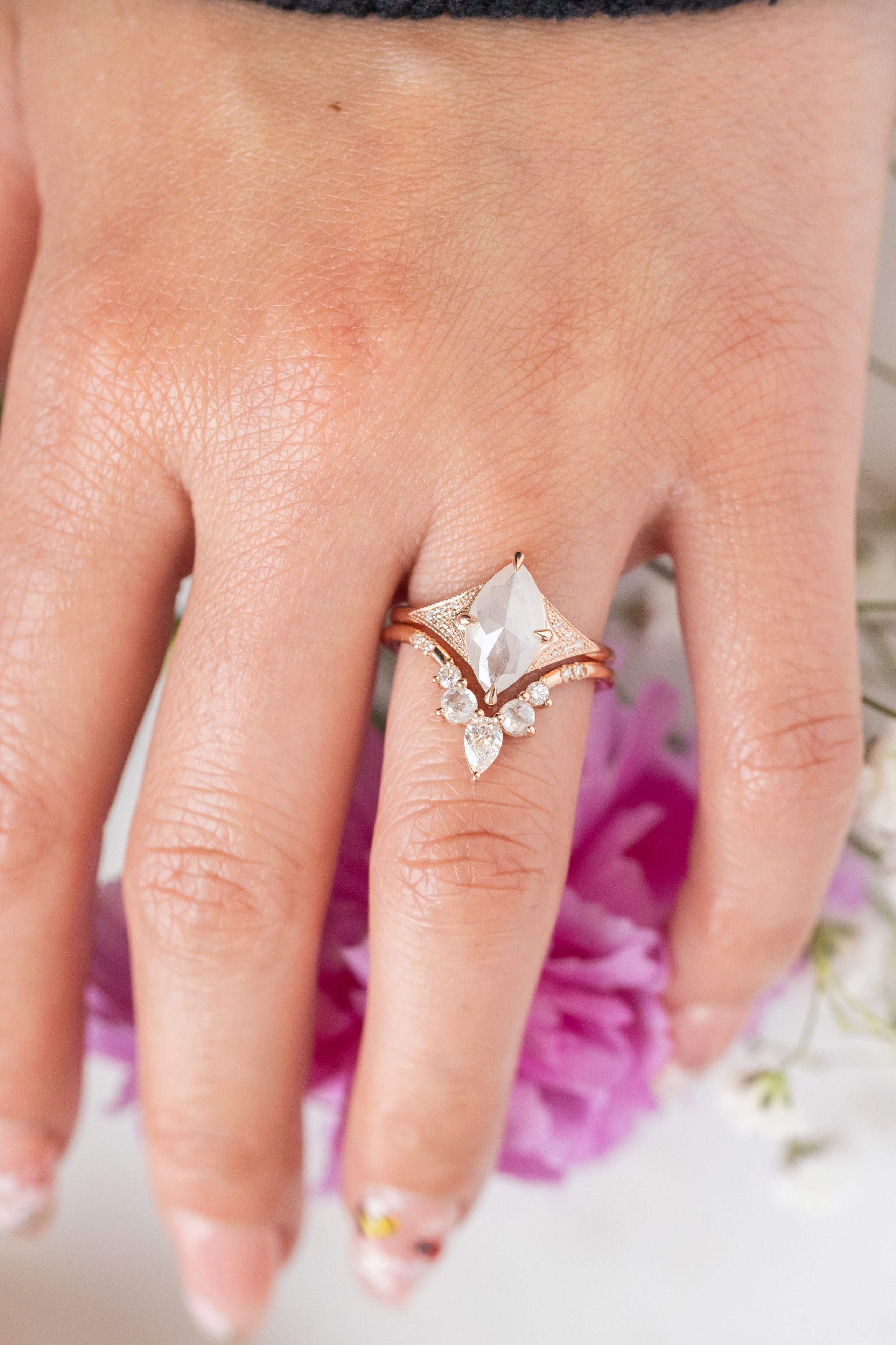 1.88 Carat Icy White Marquise Diamond Engagement Ring, Aela Setting, 14K Rose Gold