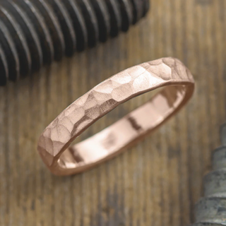 Triangle Diamond Hammered Matte Mens Wedding Band, Comfort Fit, 14K Rose Gold