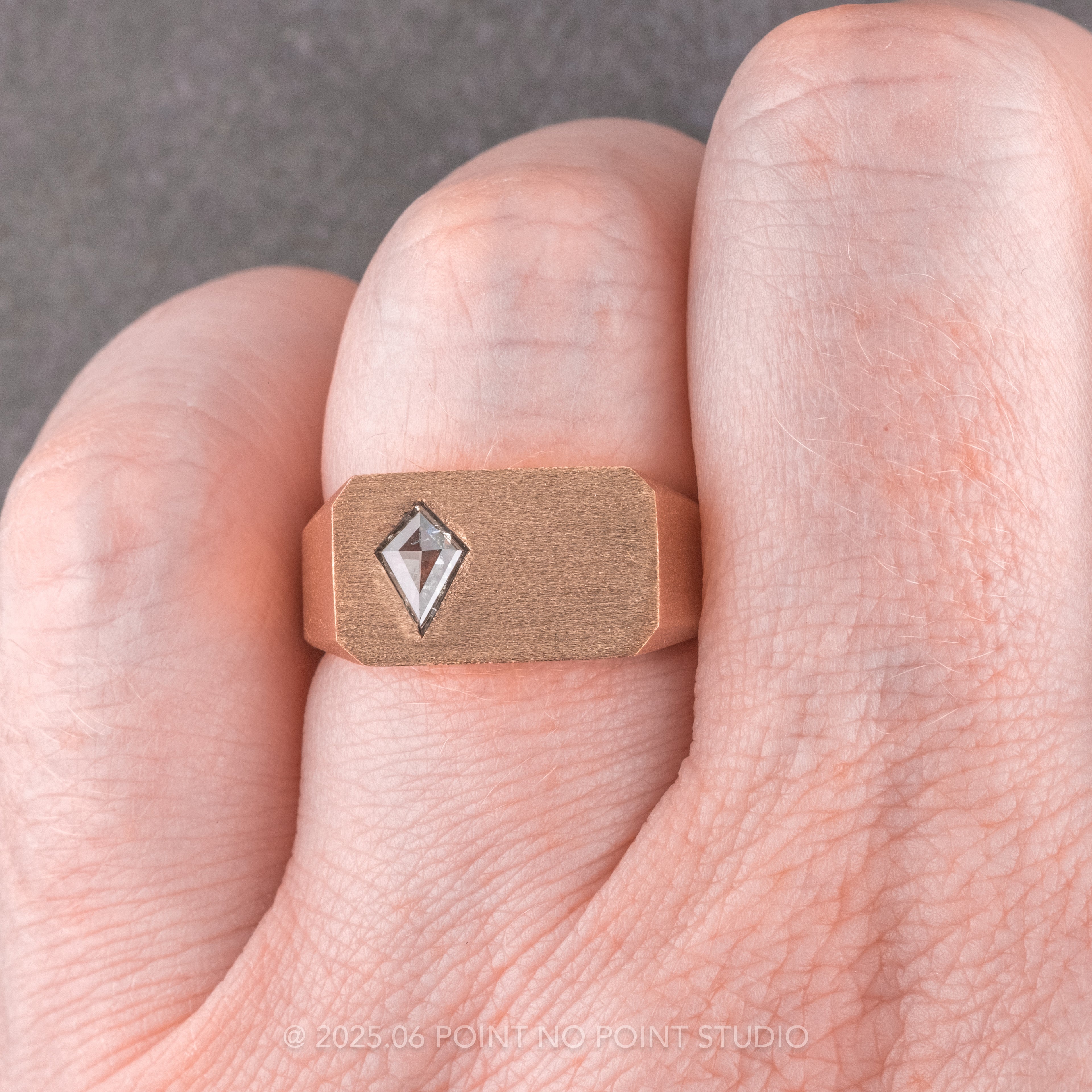 Men's Wide Signet Style Diamond Wedding Ring, 14K Rose Gold