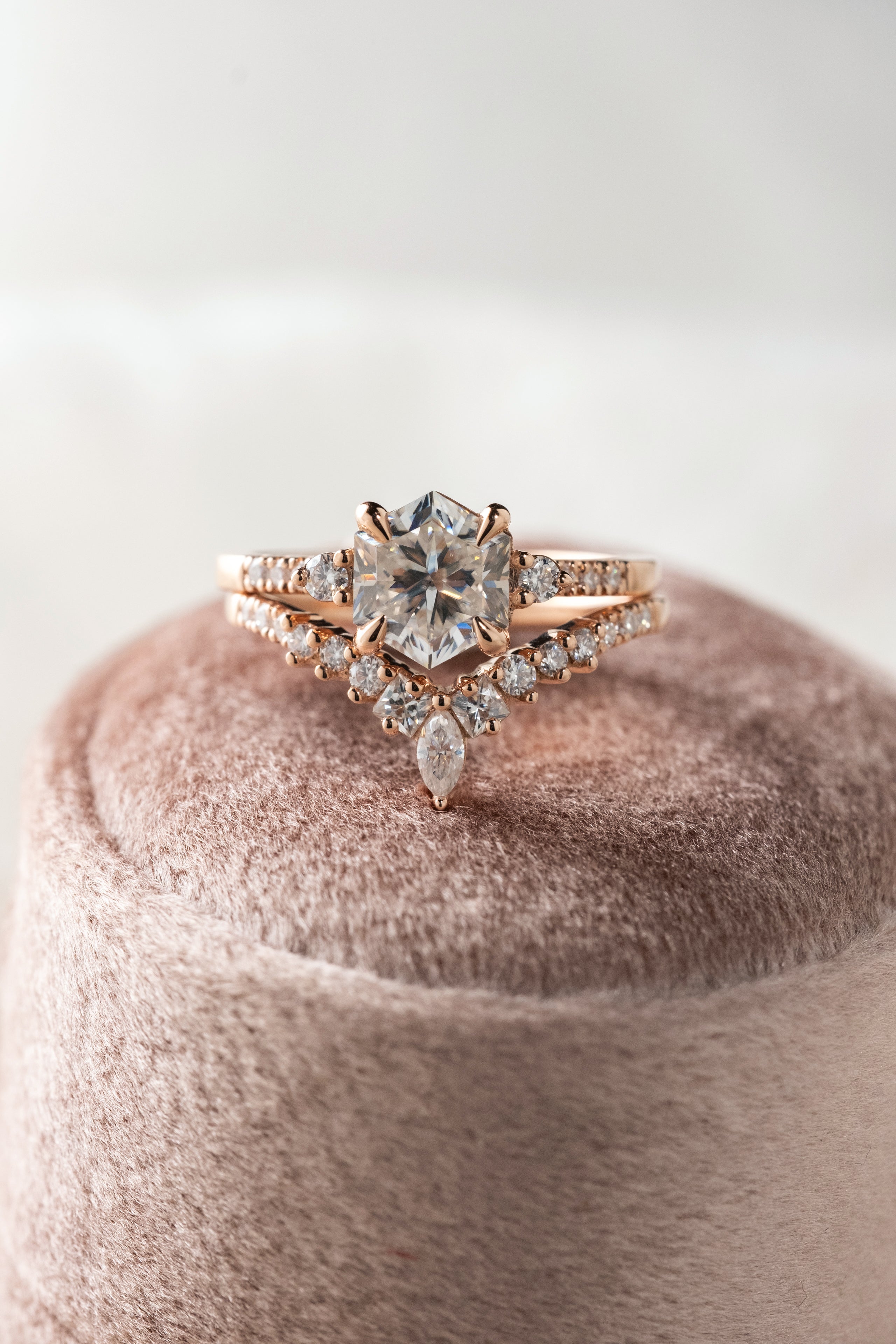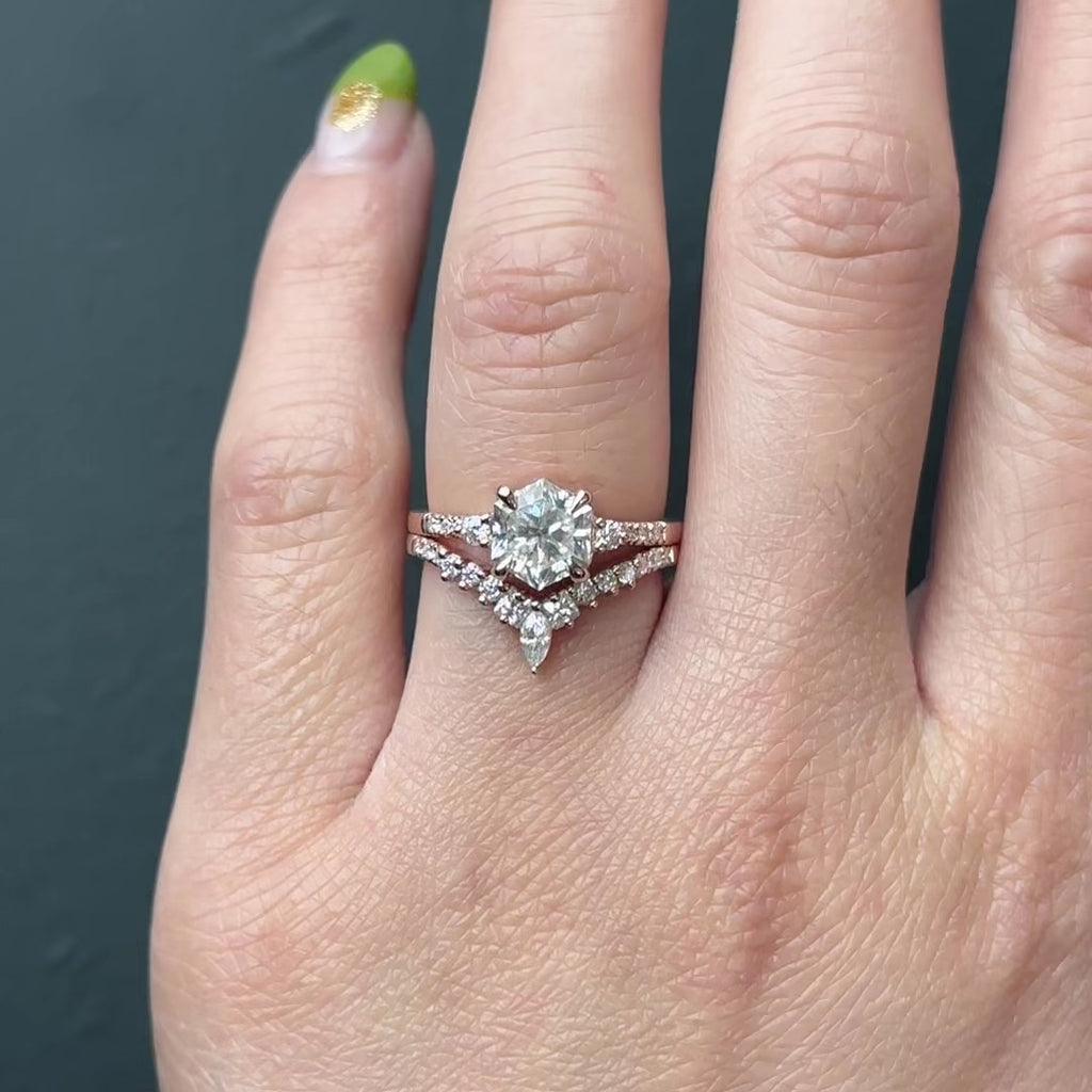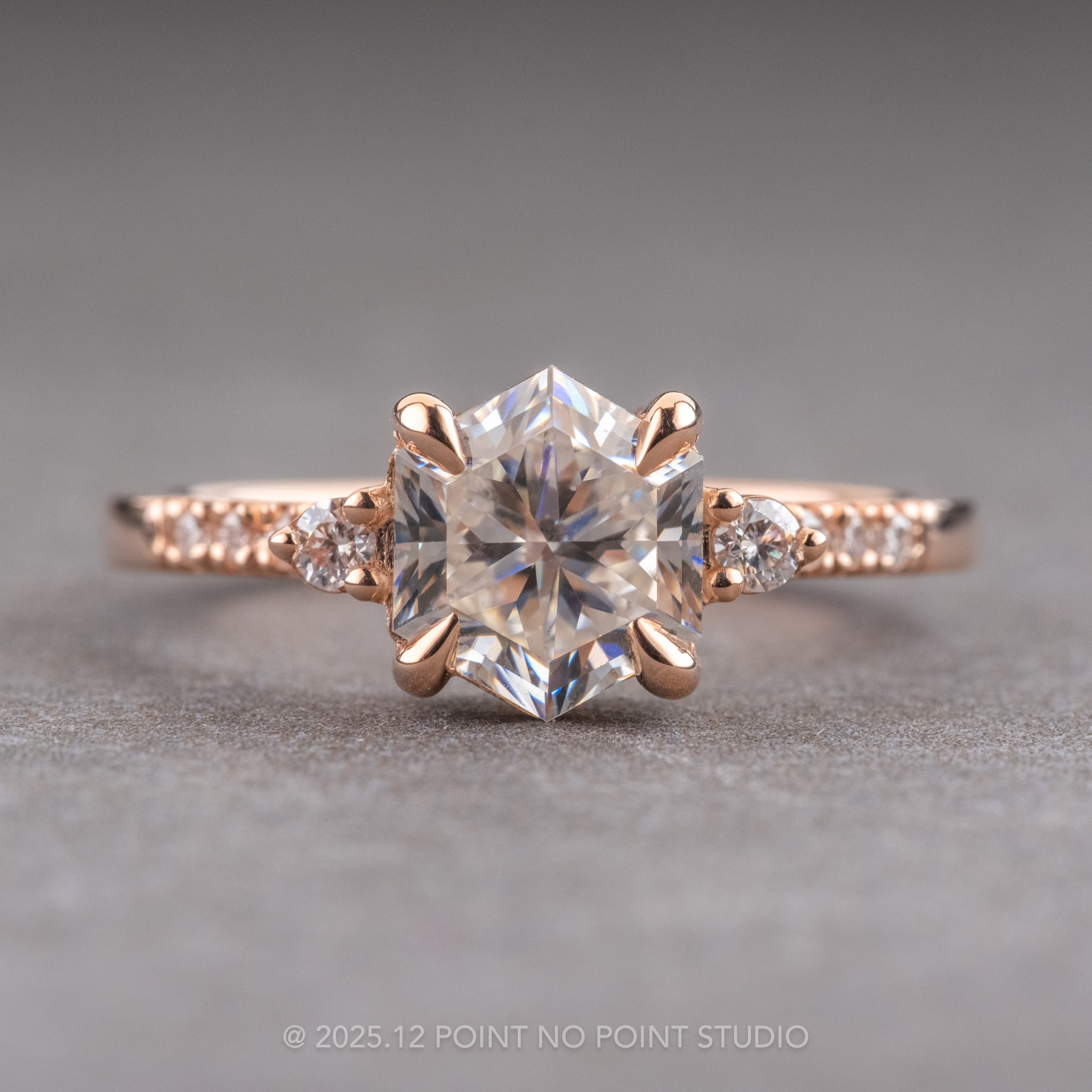 1.50 Carat Hexagon Moissanite Engagement Ring, Eliza Setting, 14k Rose Gold