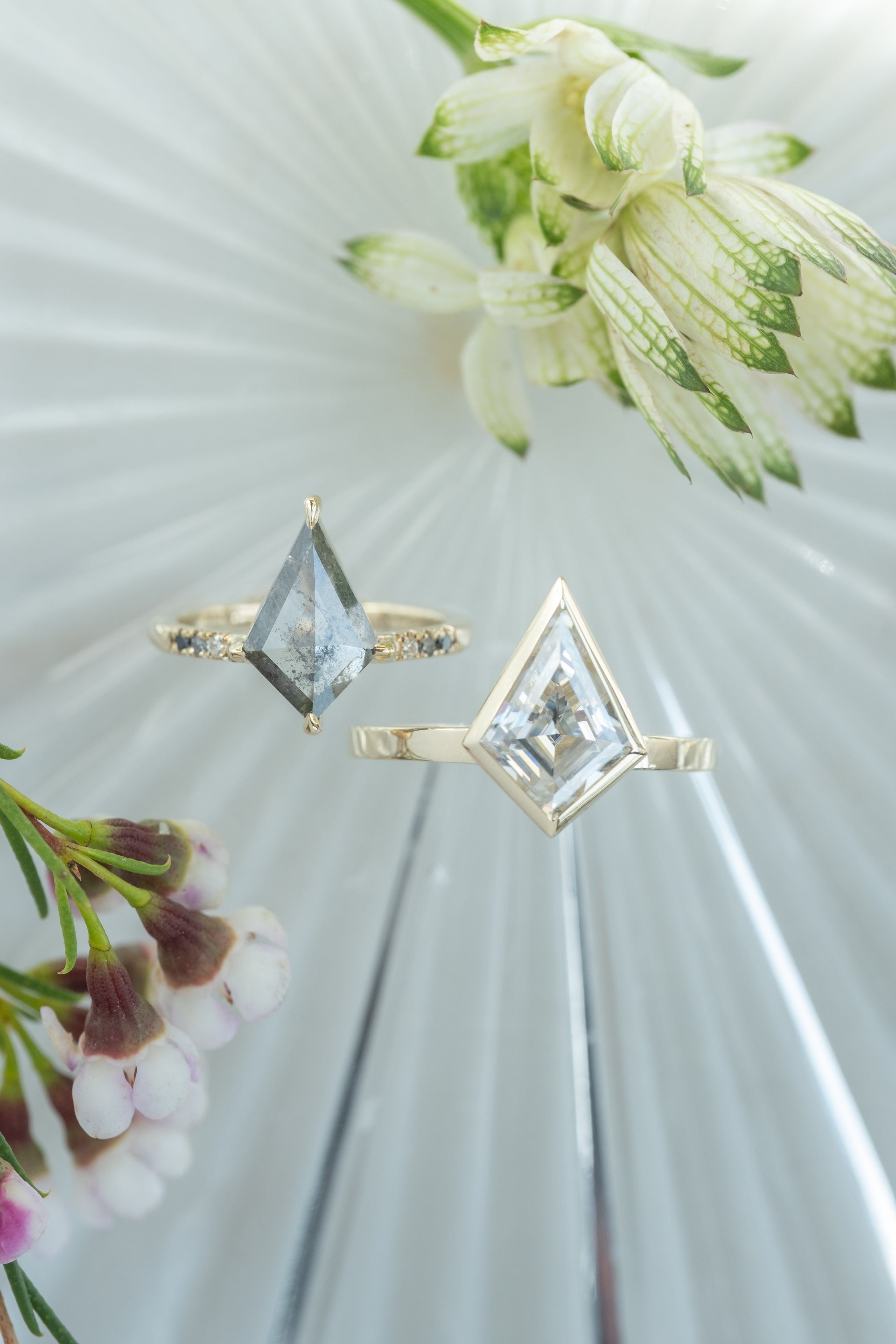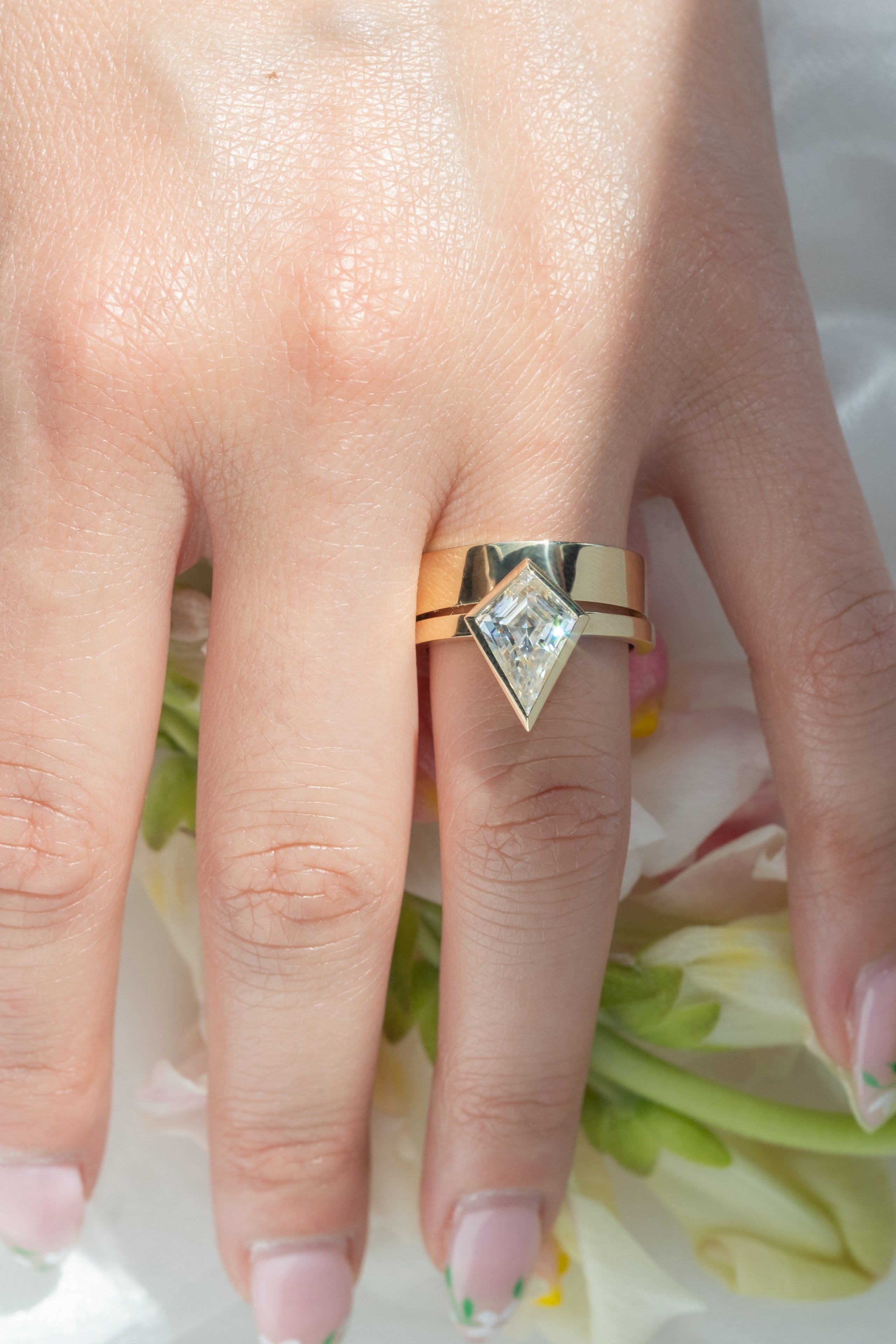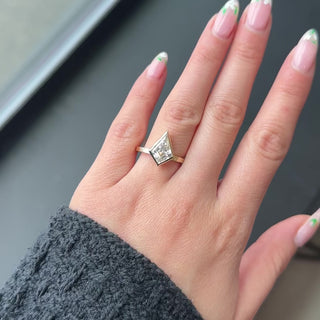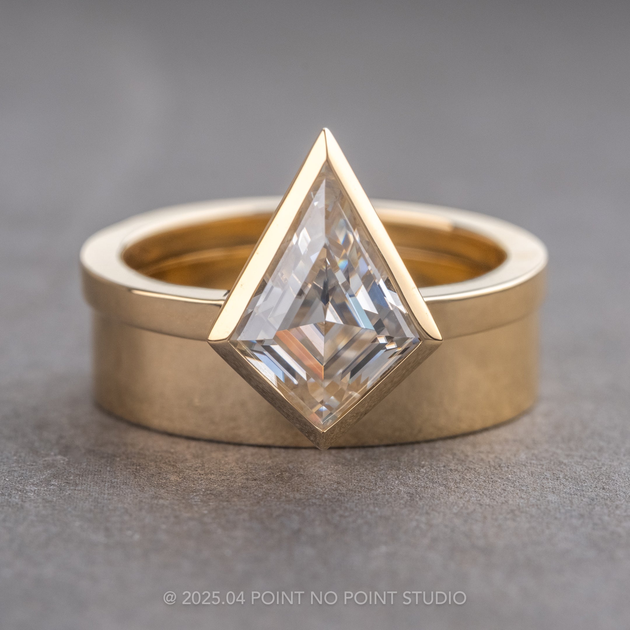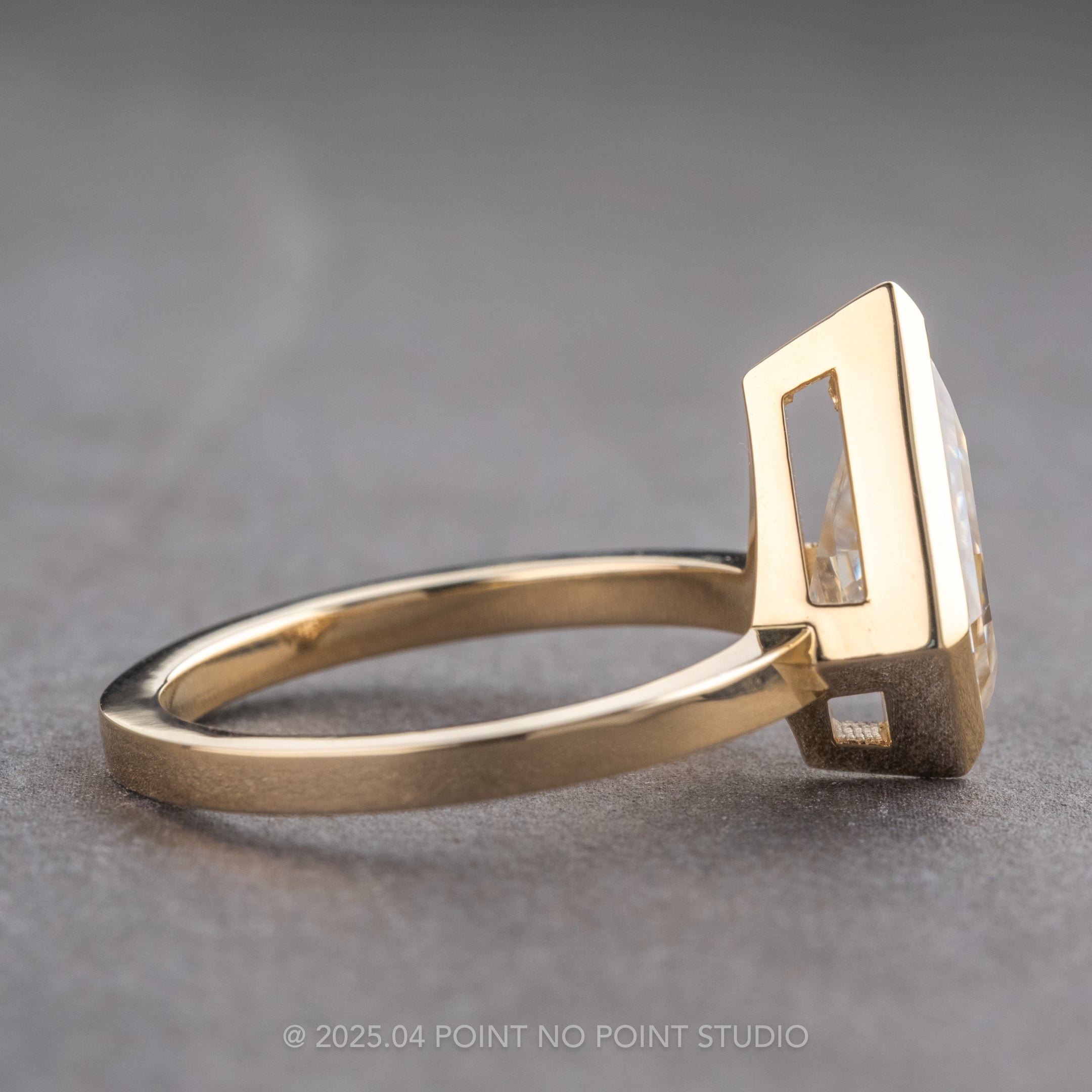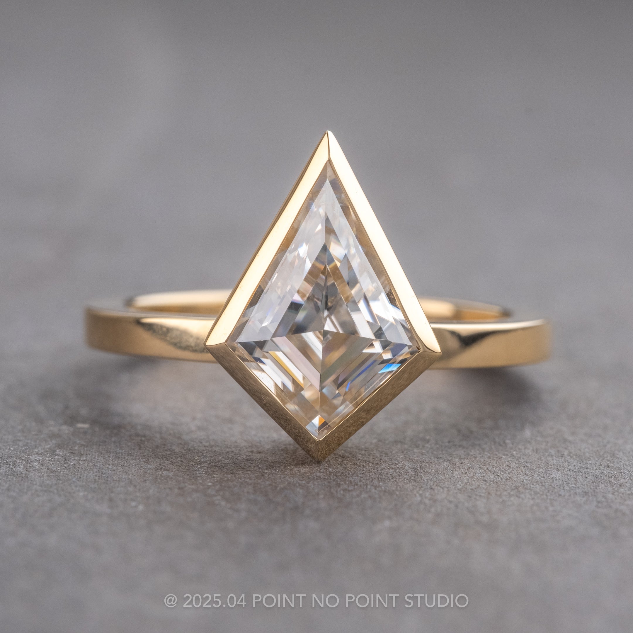 2.70 Carat Kite Moissanite Engagement Ring, Bezel Jane Setting, 14K Yellow Gold