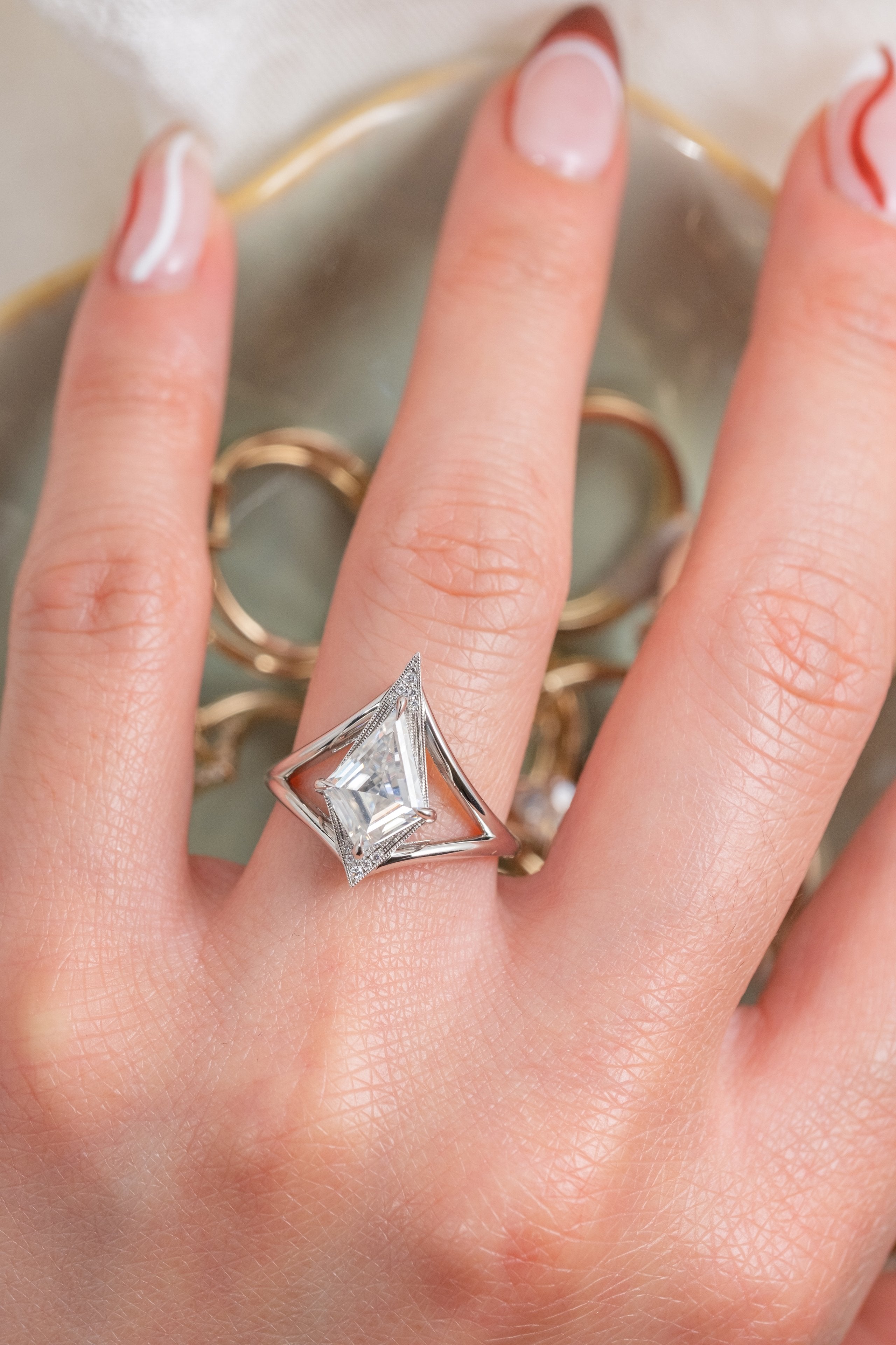 Kite Moissanite and Diamond Engagement Ring, Arwen Setting