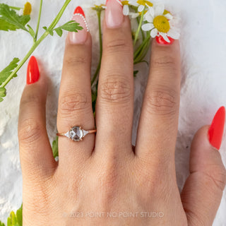 1.27 Carat Salt and Pepper Oval Diamond Engagement Ring, Magnolia Setting, 14k Yellow Gold