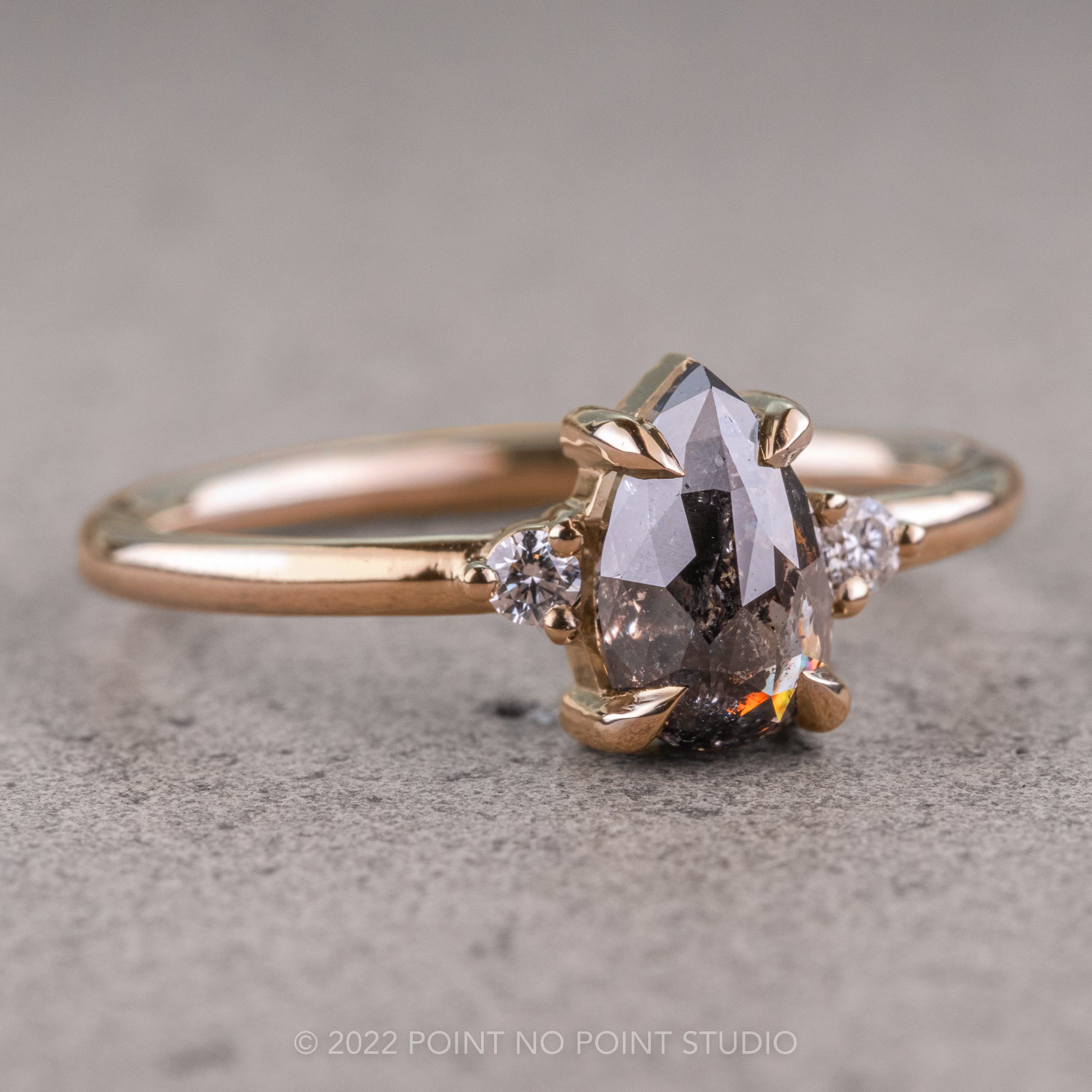 1.32 Carat Salt and Pepper Pear Diamond Engagement Ring, Zoe Setting, 14K Peach Gold