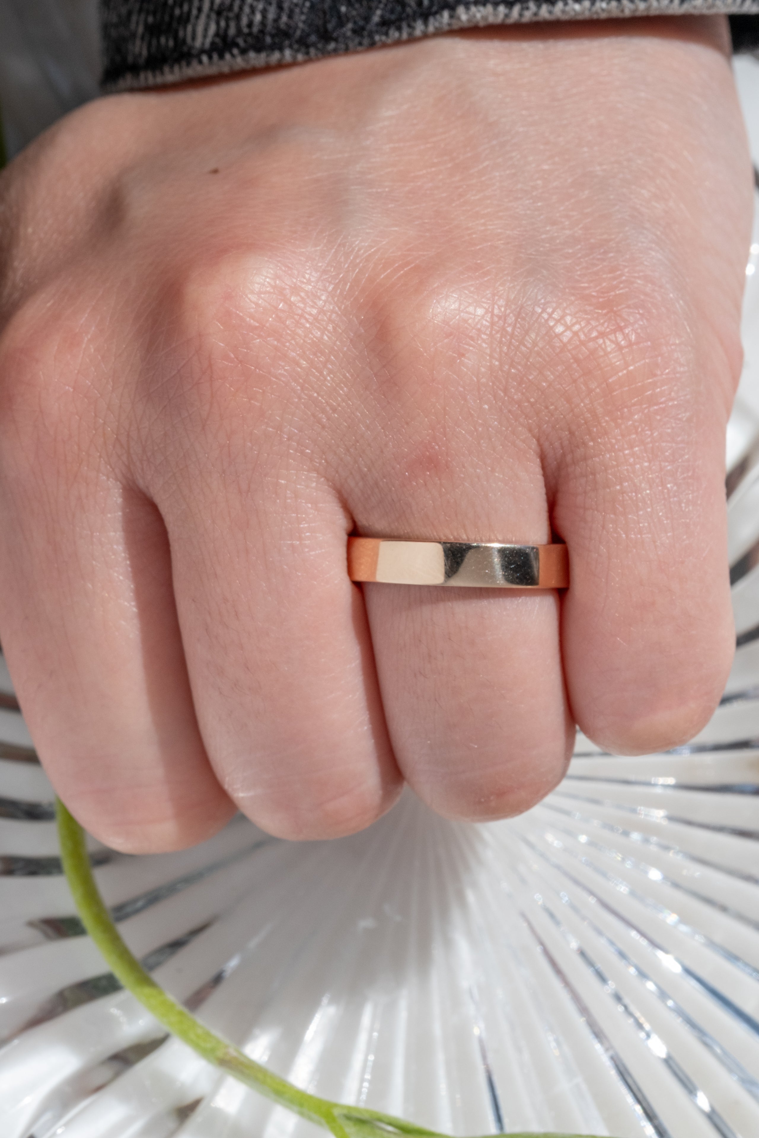 4mm Comfort Fit 14k Peach Gold Mens Wedding Ring, Polished